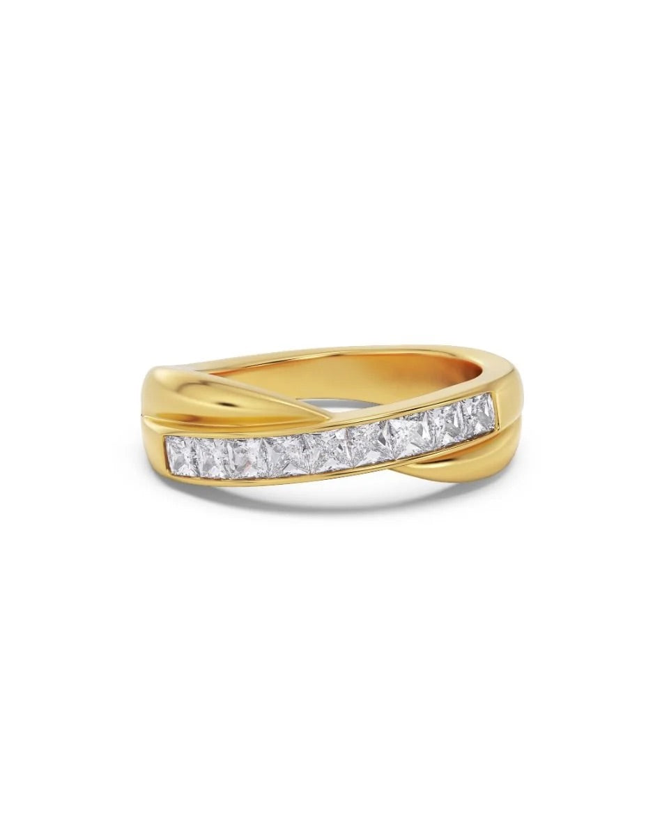 Andorra Ring Duo Gold fra Edblad. Andorra Ring Duo er en elegant ring med to avrundede skinner som er viklet rundt hverandre – én med glitrende klare steiner og én med blank overflate. Designet gir et raffinert og tidløst uttrykk som passer både til hverdags og fest.