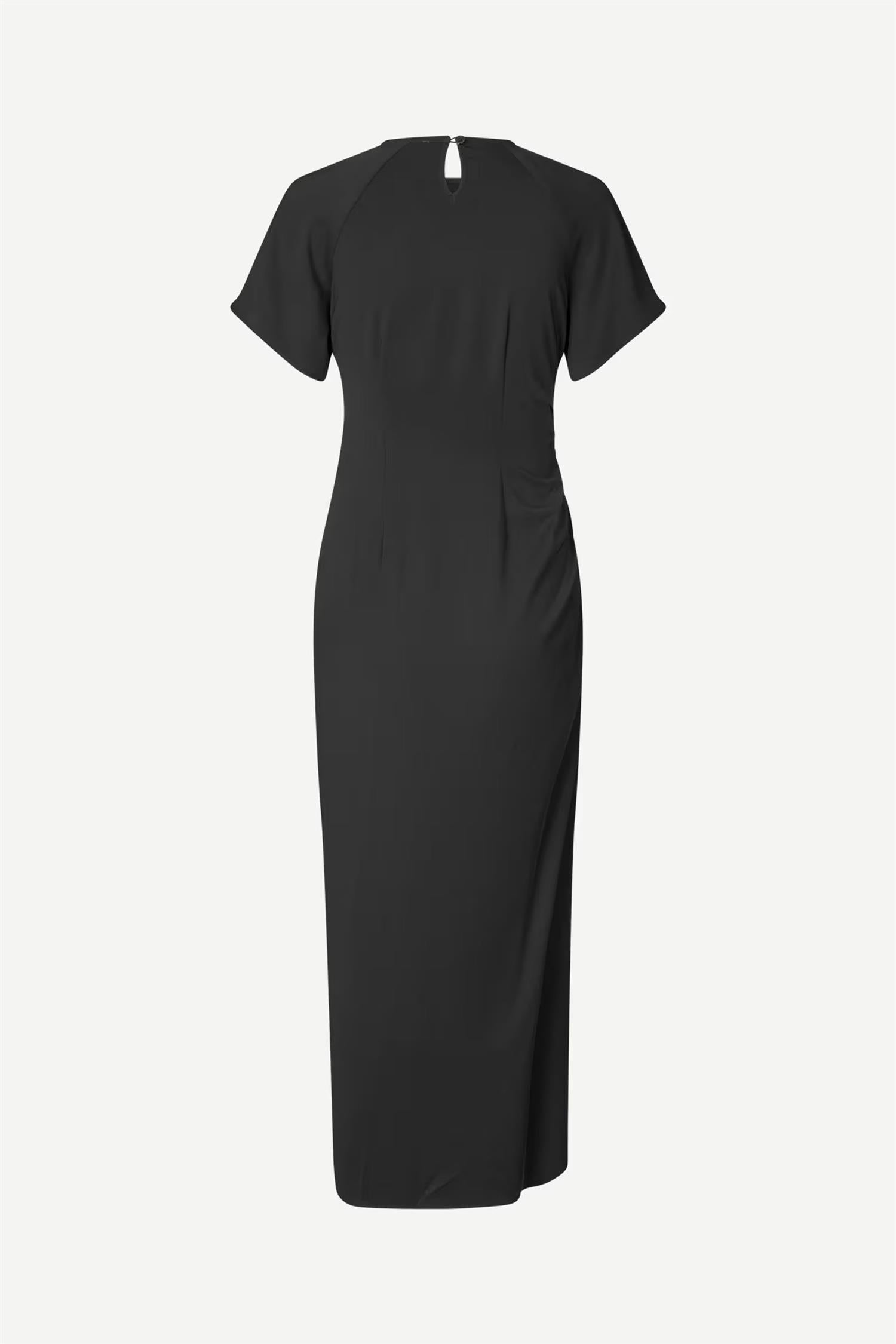 Saalbero Dress 15455 fra Samsøe & Samsøe. Nydelig maxikjole med korte ermer og en klassisk, rett passform. Kjolen har knapp- og hempe-lukking bak, samt skjult glidelås i siden. Rynkedetalj på siden og splitt i benet gir en flatterende silhuett. Normal i størrelsen.
