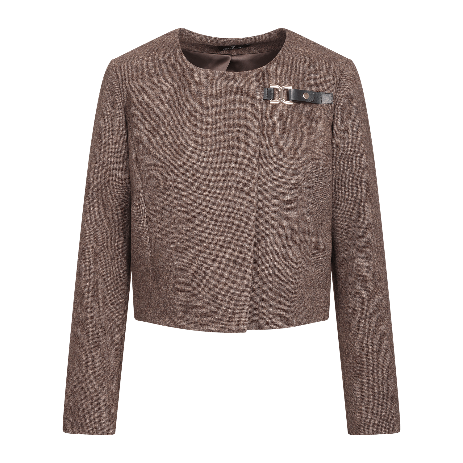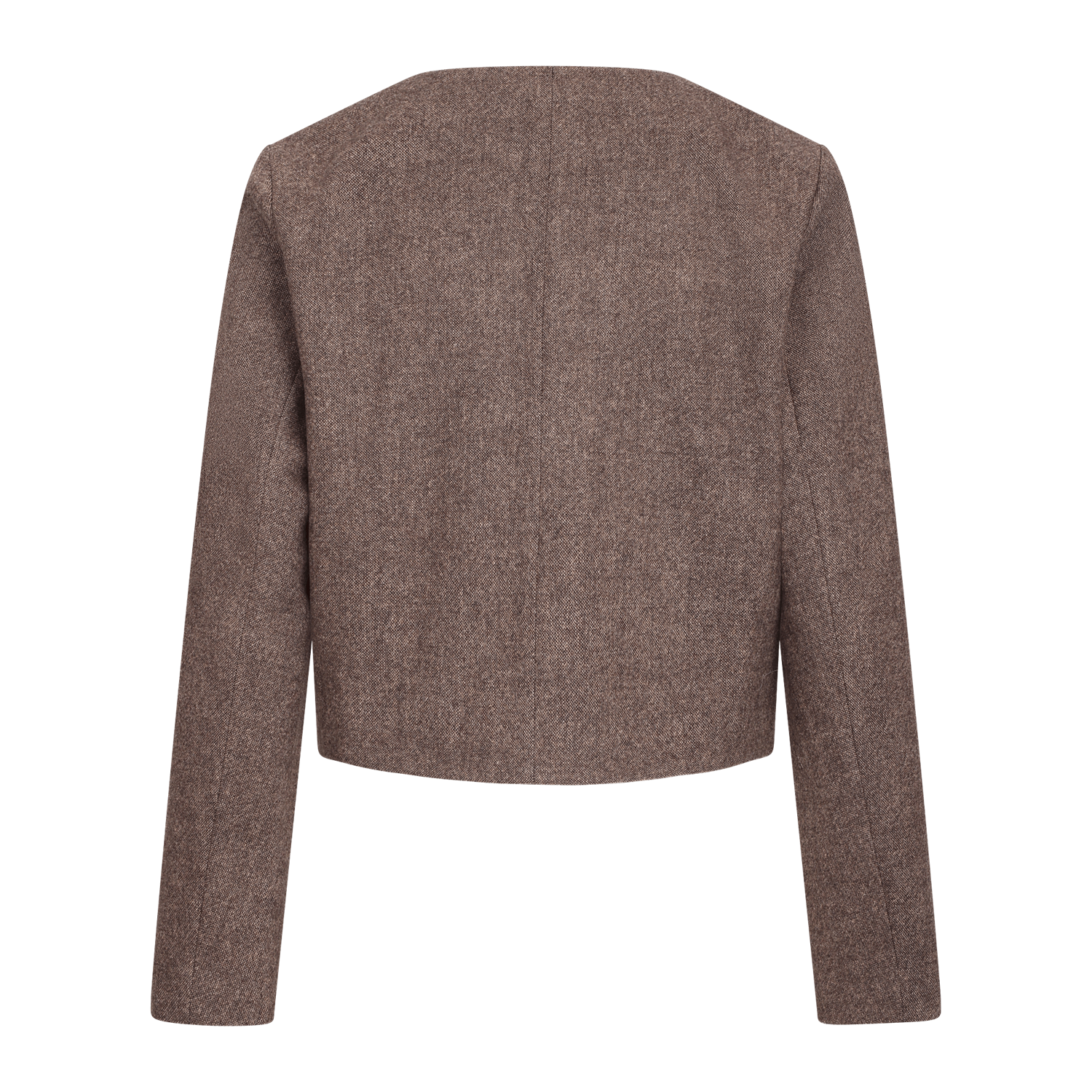 Annabelle Jacket fra Urban Pioneers. Annabelle Jacket er en cropped jakke i twill-ull med luksuriøs kvalitet og en moderne silhuett. Den har en unik kragedetalj og kort lengde som gjør den perfekt til lag-på-lag styling. Jakken kombinerer komfort og eleganse, og er et plagg som enkelt løfter ethvert antrekk. Normal i størrelsen.