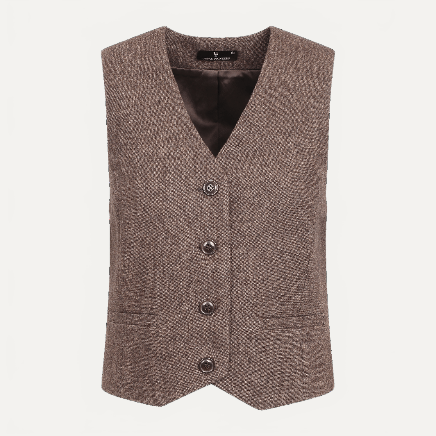 Melanie Waistcoat fra Urban Pioneers. Melanie Waistcoat er en elegant vest i twill-ull med luksuriøs kvalitet og en flatterende, skreddersydd passform. Den er like fin alene som i lag-på-lag, og gir et tidløst uttrykk. Perfekt til hverdags alene eller med en skjorte under. Ekstra stilig sammen med de matchende buksene. Normal i størrelsen.