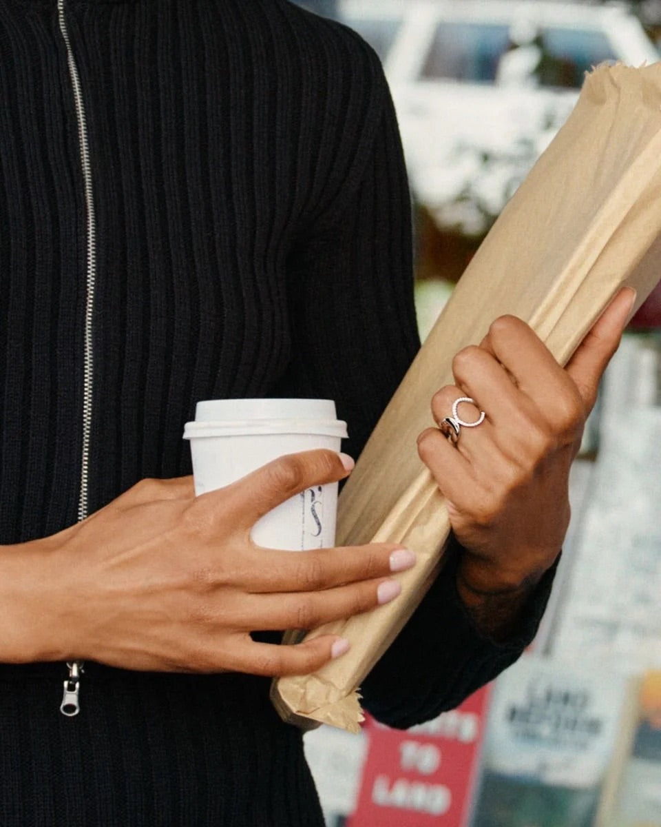 Plié Ring Steel fra Edblad. Plié-serien fokuserer på ørene, men inkluderer også en ring som speiler øredobbenes delikate og uttrykksfulle former – inspirert av den klassiske ballettposisjonen. Ringen, laget i blankt rustfritt stål, har to buede skinner: en tynnere med glitrende kubiske zirkoner og en bredere med glatt overflate. Resultatet er et elegant og balansert uttrykk som passer like fint alene som sammen med andre smykker i serien. Onesize.