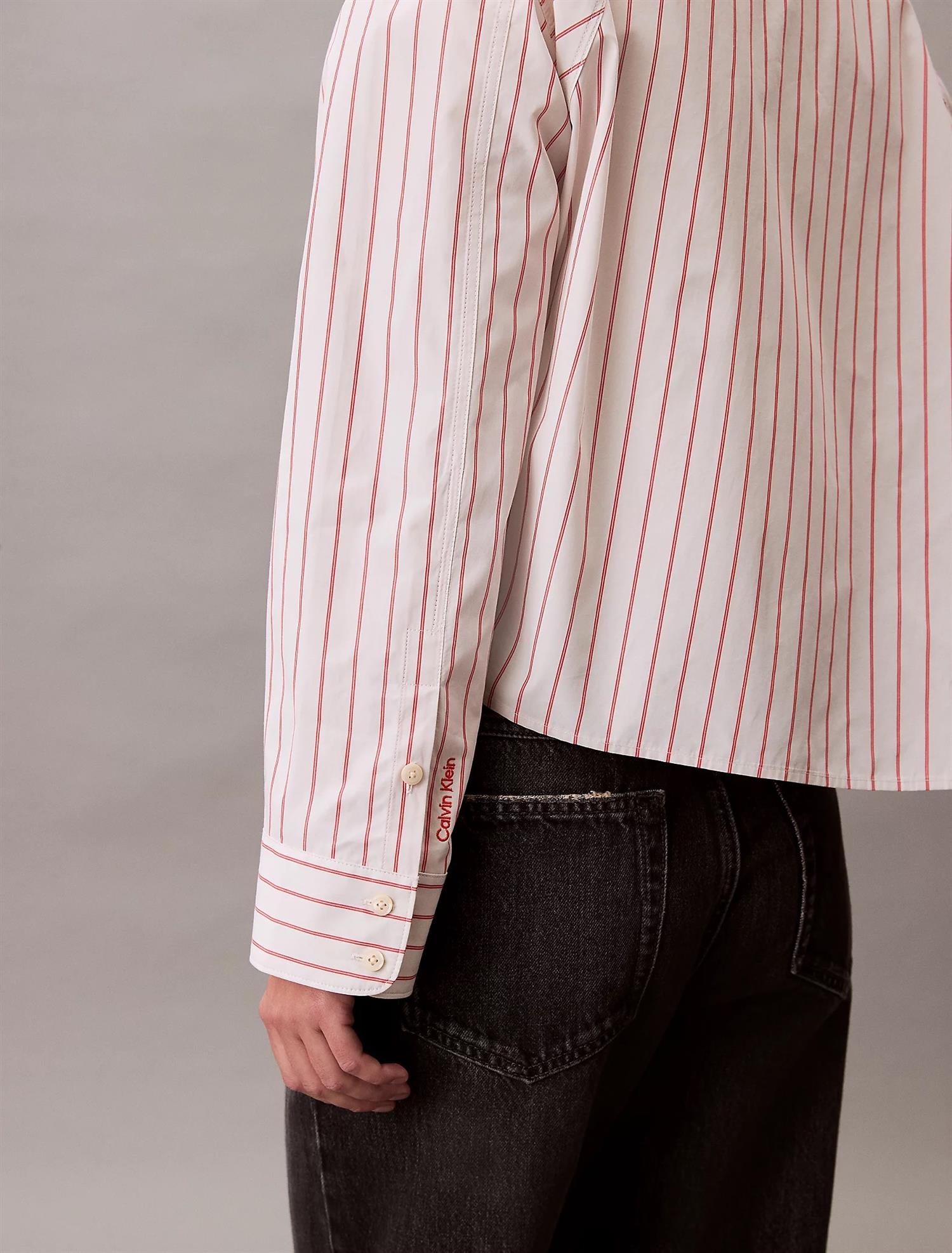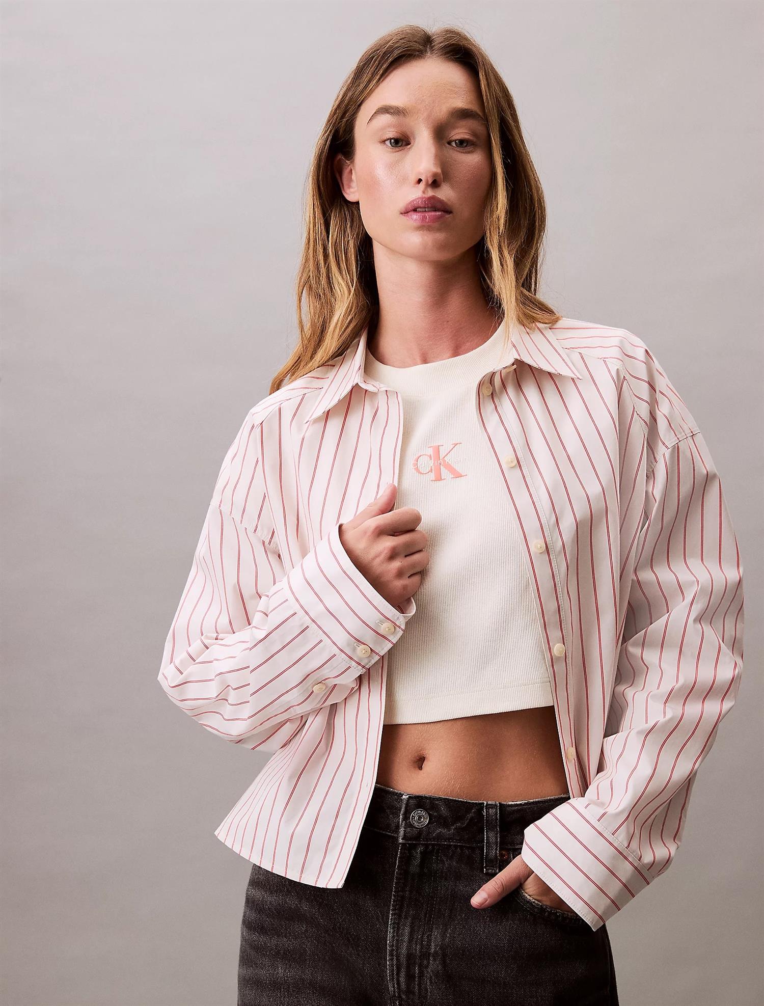 Yd stripe Boxy Cropped Shirt fra Calvin Klein. En cropped skjorte med boxy passform, klassisk krage og lange ermer. Designet med vertikale striper og knappelukking i front. Normal i størrelsen.