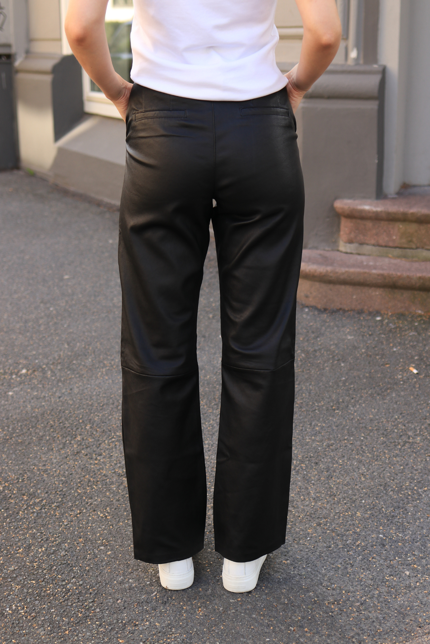 Madelyn Pants fra Urban Pioneers. Madelyn Pants er skinnbuksene som kombinerer edgy stil med tidløs eleganse. Laget i 100% mykt lammeskinn, har den en høy midje og rett passform som gir en flatterende silhuett. Med passpoilerte baklommer, beltehemper og lukking med glidelås og knapp, er dette en bukse du kan style både røft og raffinert – like perfekt til hverdags med sneakers som til kvelds med hæler. Normal i størrelsen.