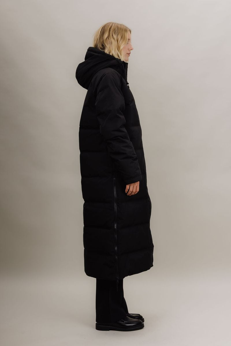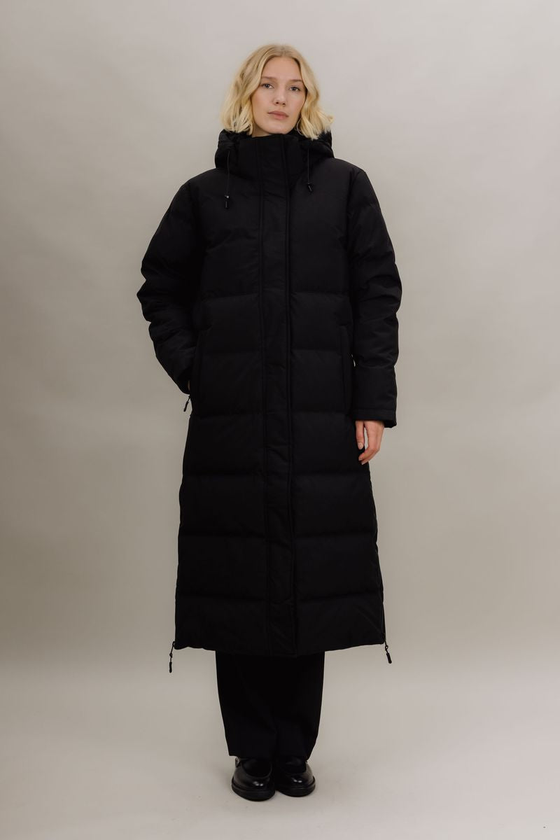 Ida Down Coat fra Urban Pioneers. Ida Down Coat er en teknisk vinterkåpe i rett modell som holder deg varm og tørr gjennom vinteren. Den har sveisede sømmer og vanntett materiale med 10.000 mm vannsøyle som beskytter mot vær og vind. Glidelåser i sidene som gir mulighet for lufting. Kåpen er fylt med 80% dun og 20% fjær fra etisk kilde, og det polstrede designet gir ekstra varme og komfort. Normal i størrelsen.