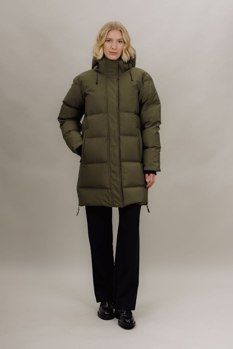 Ida Down Parka fra Urban Pioneers. Ida Down Parka er en varm og funksjonell dunjakke fylt med 80% dun og 20% fjær (RDS-sertifisert). Jakken har rett fasong, sidelommer med glidelås, samt en praktisk innerlomme. Glidelåser i sidene gir mulighet for lufting. Med 10.000 mm vannsøyle og teipede sømmer er den helt vanntett. Normal i størrelsen.