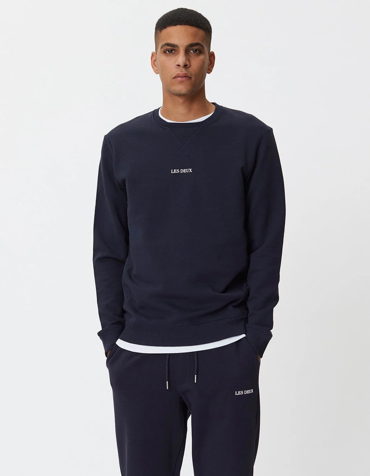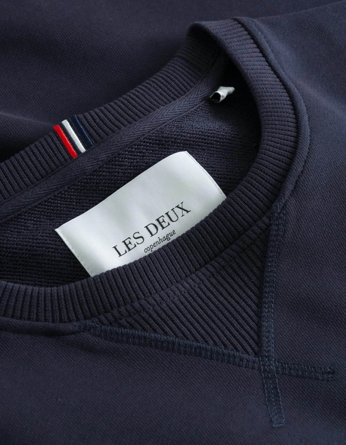 Lens Sweatshirt fra Les Deux. Lens Sweatshirt er en klassisk og allsidig genser laget av 100% myk bomull som sikrer høy komfort og god kvalitet. Genseren har et minimalistisk uttrykk med brodert tricolore-detalj i kragen og den ikoniske Les Deux-logoen på brystet. Dette er et tidløst basisplagg som enkelt kan kombineres med både jeans, chinos eller shorts, og som passer like godt året rundt. Normal i størrelsen.