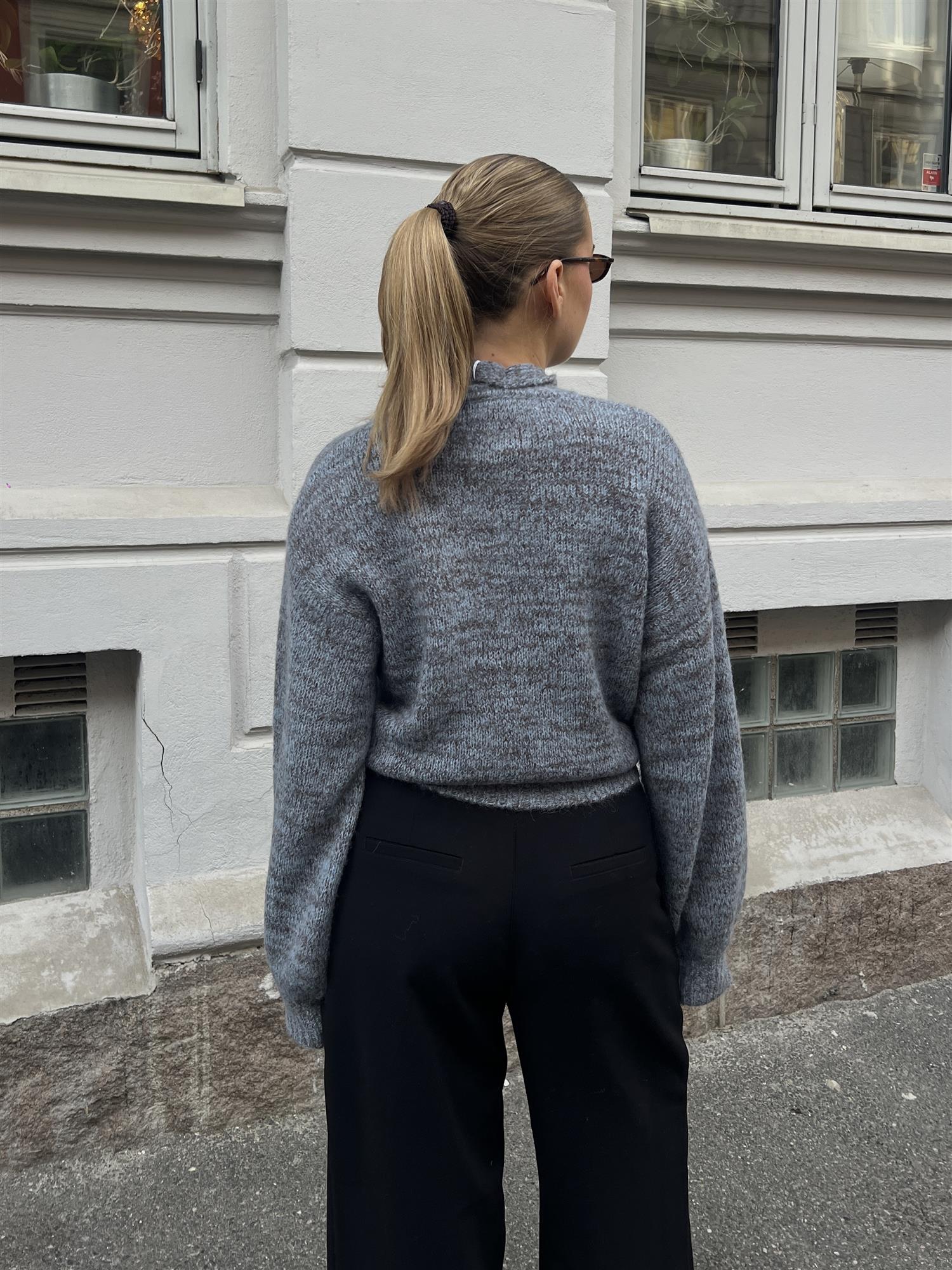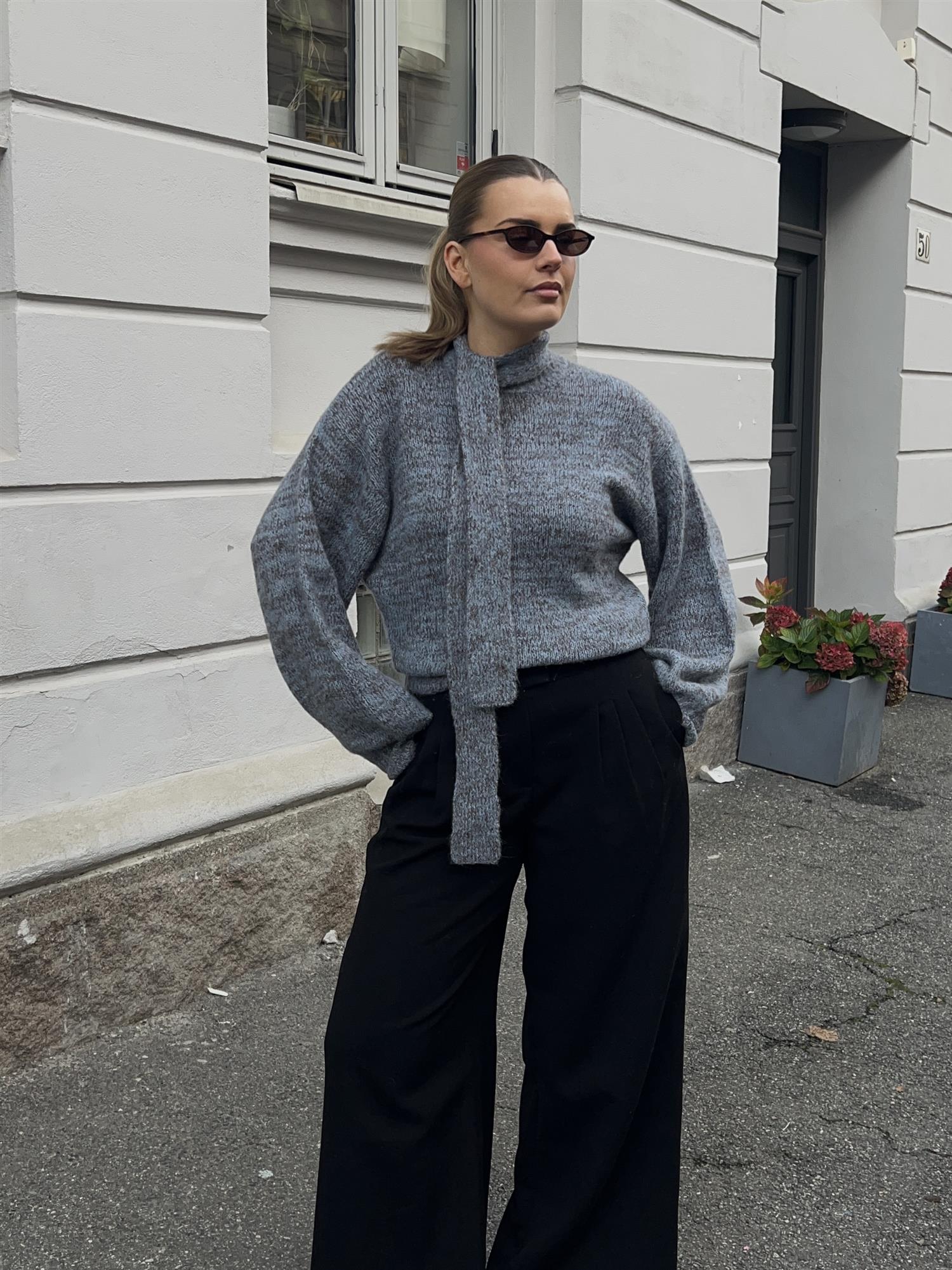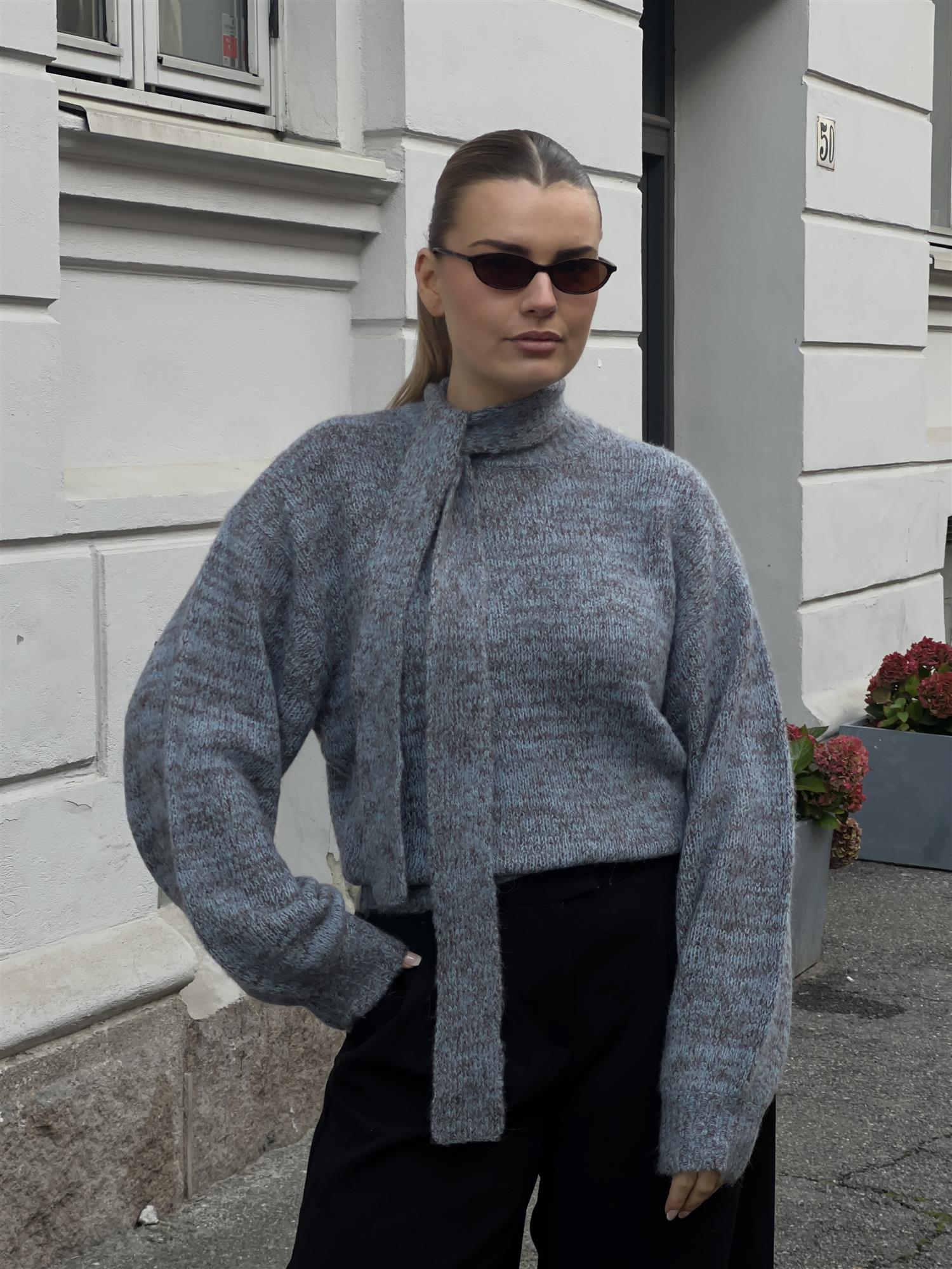 Verona Slim Scarf Sweater fra Designers Remix. Verona Slim Scarf Sweater er en elegant genser med integrert skjerfdetalj som gir et moderne og sofistikert uttrykk. Den myke alpakka- og ullblandingen gir en behagelig og varm følelse, mens den melerte fargen skaper dybde og tekstur. Et stilrent plagg som passer like godt til hverdags som til mer pyntede anledninger. Normal i størrelsen.