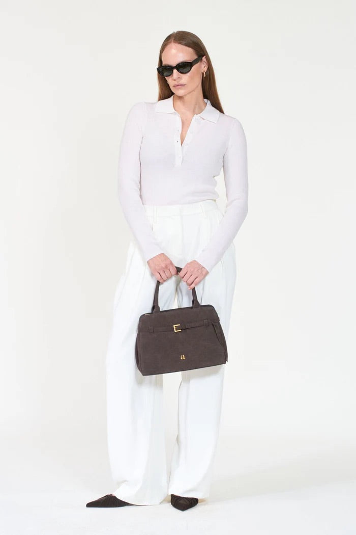Kathrine True Suede fra Arnie Says. Kathrine True Suede er en elegant veske laget i mykt semsket skinn som kombinerer tidløs stil med funksjonell design. Den har en lett strukturert form med god plass til det viktigste, og er utstyrt med doble topphåndtak og glidelåslukking for praktisk bruk i hverdagen. Et sofistikert tilbehør som balanserer eleganse og brukervennlighet på perfekt vis.