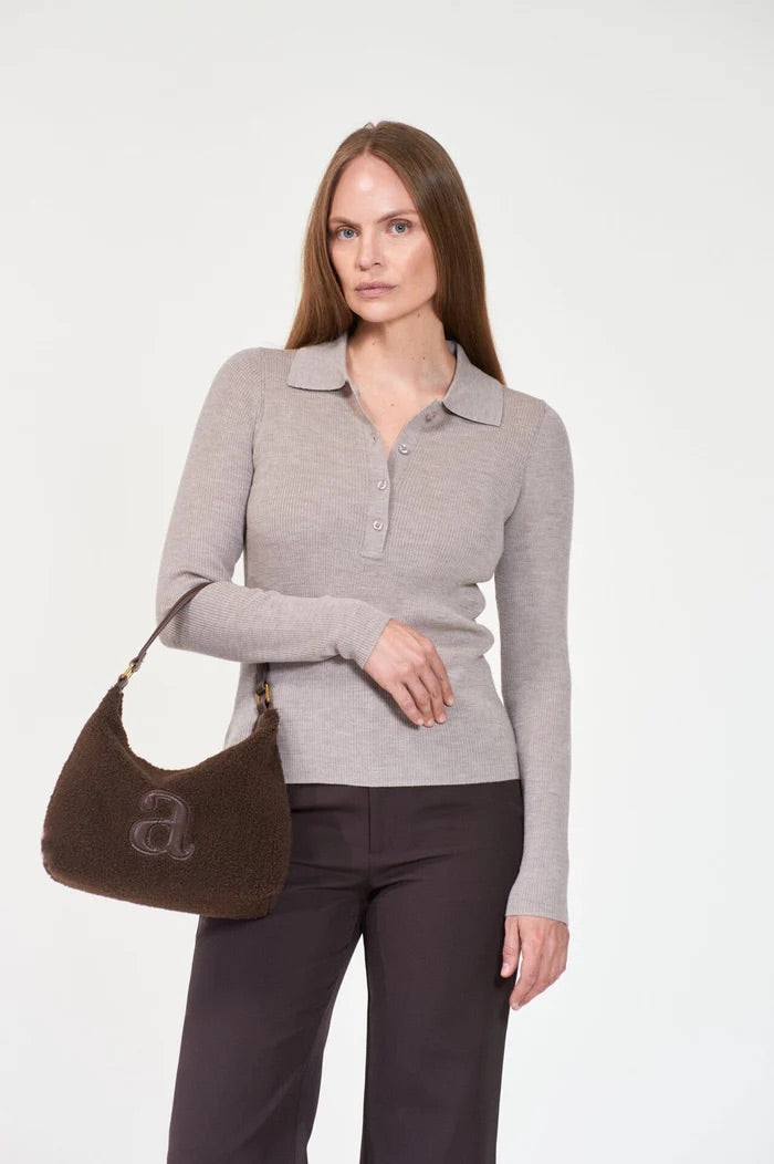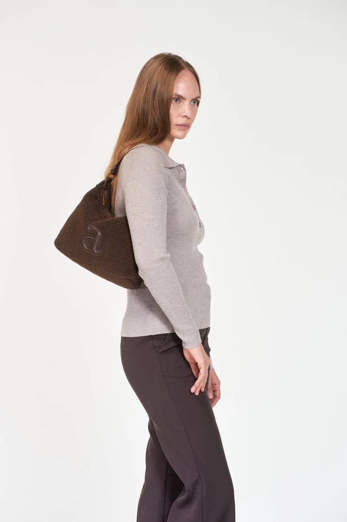 Hampton Teddy fra Arnie Says. Hampton Teddy er en elegant veske i myk teddykvalitet med detaljer i imitert skinn og quiltet logo i front. Vesken har et romslig hovedrom med glidelåslukking, samt en åpen lomme og en liten glidelåslomme som gjør det enkelt å holde orden på eiendelene. Perfekt størrelse for å bære med seg det viktigste i hverdagen.