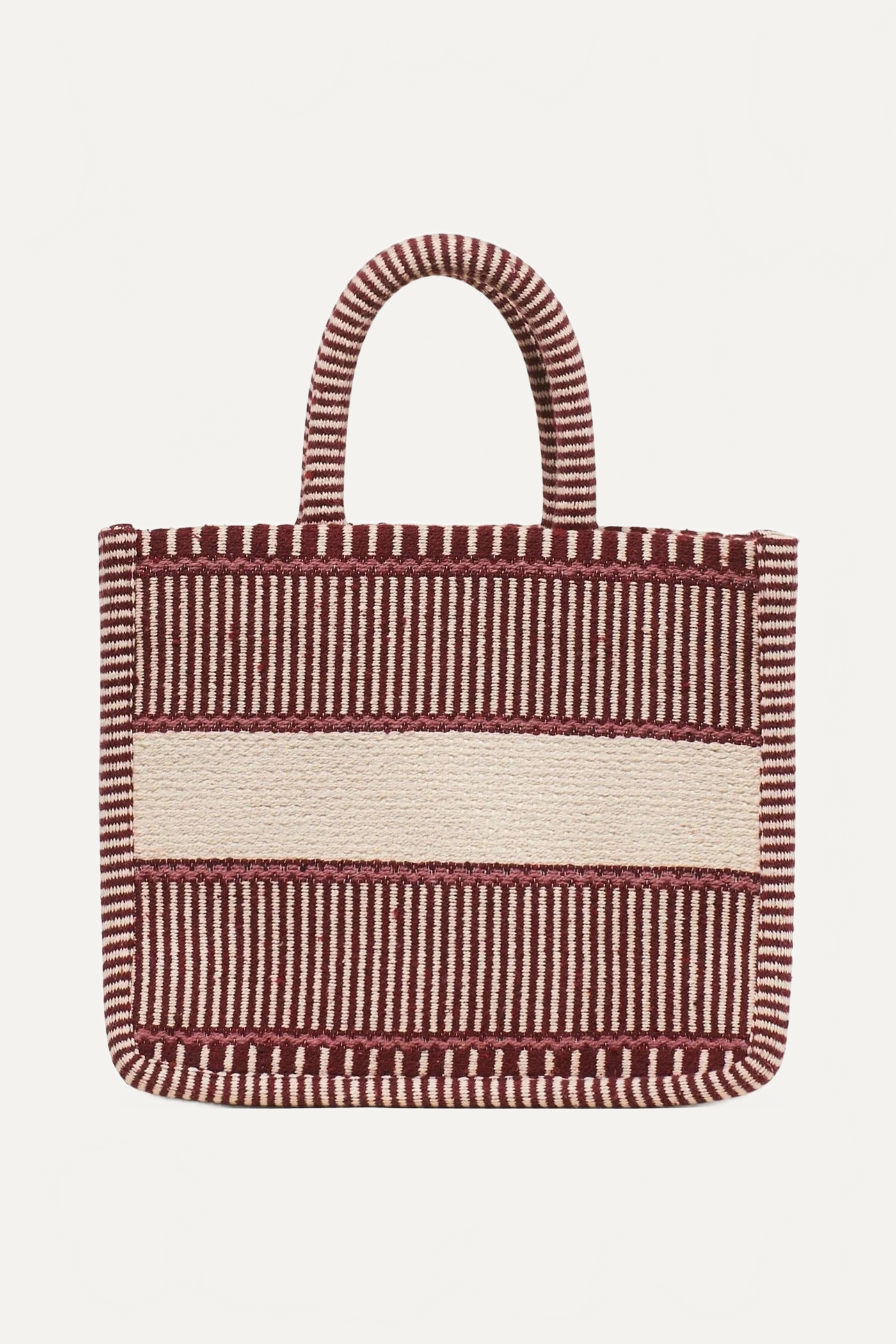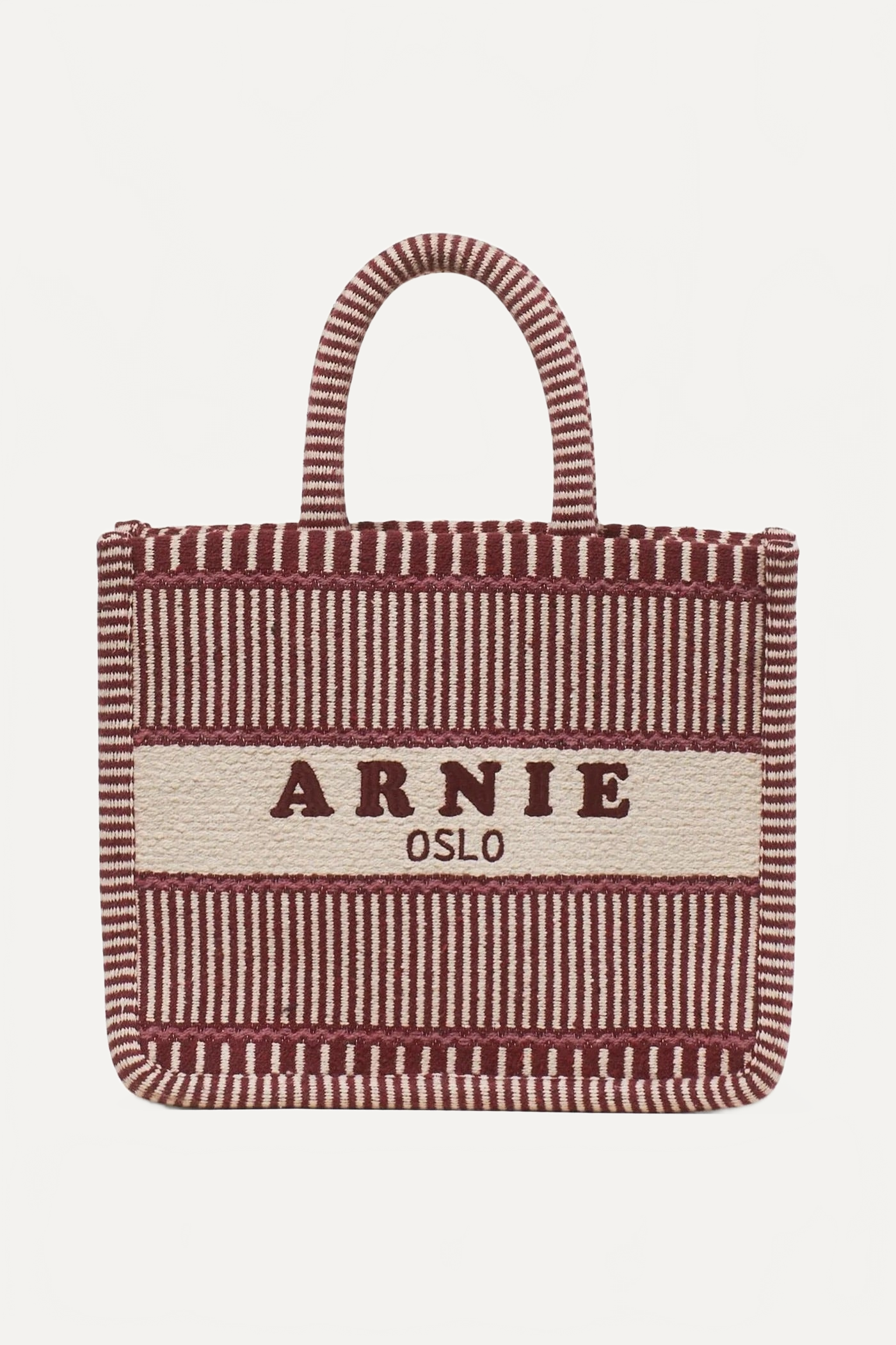 Porto Mini fra Arnie Says. Porto Mini er en elegant shopper i vevd bomullsblanding med magnetlukking. Designet har et romslig hovedrom med praktisk glidelåslomme og fôret innside som gjør vesken både funksjonell og stilfull. Perfekt til hverdagsbruk og små utflukter.