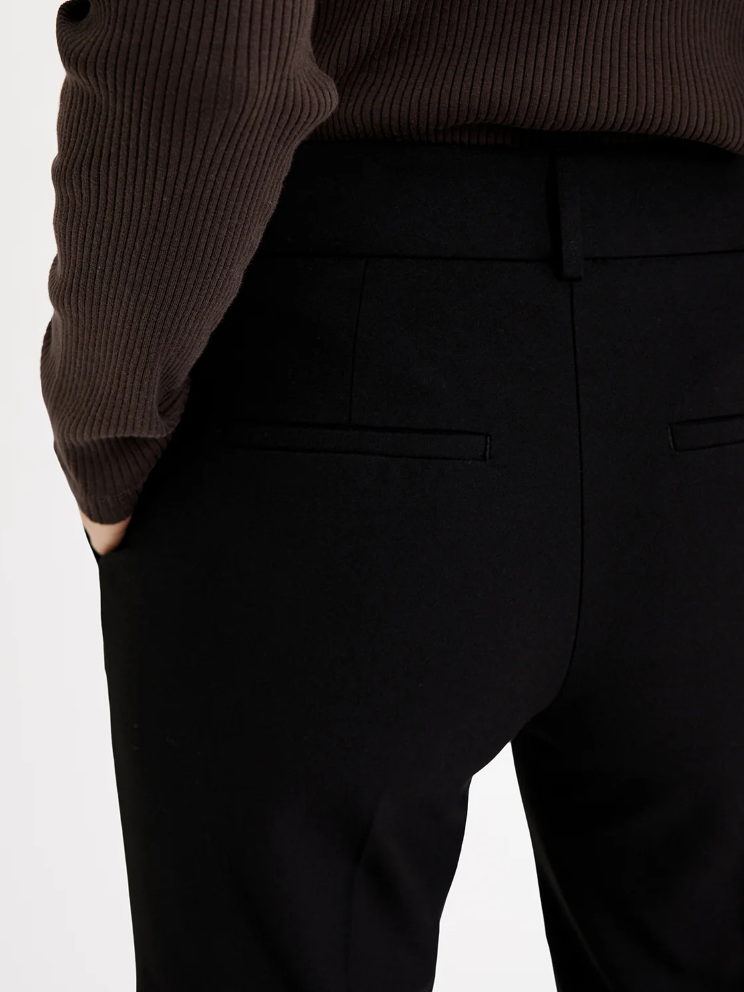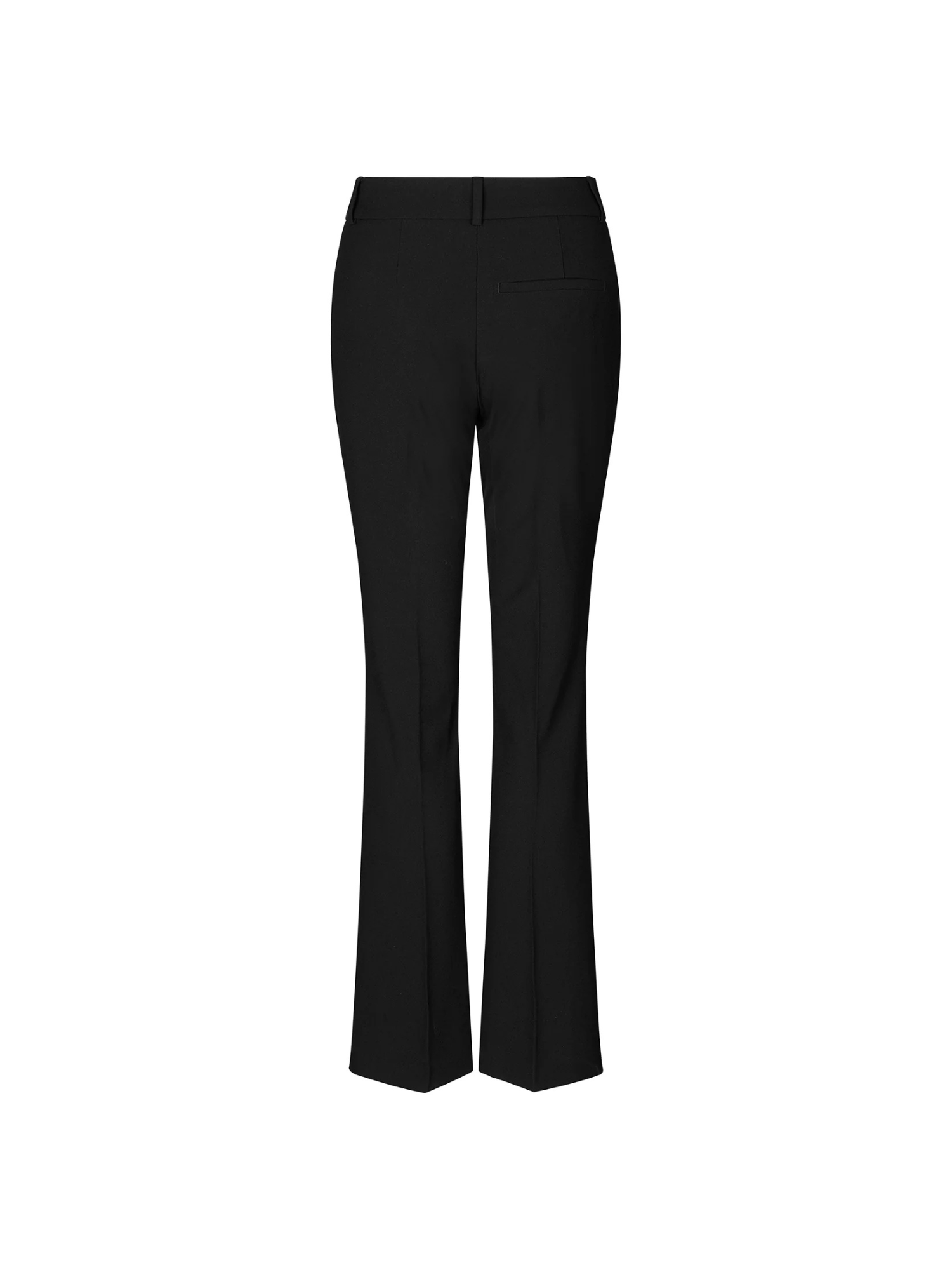 ClaraFV 285 Black fra Five Units. ClaraFV 285 Black er den klassiske dressbuksen med en flared fit. Den har en medium høy midje og sidelommer i front. Buksen lukkes med glidelås og hempe, og har en stilren presskant. Normal i størrelsen, perfekt for både hverdagsbruk og formelle anledninger. Superfin bukse å ha i basegarderoben!