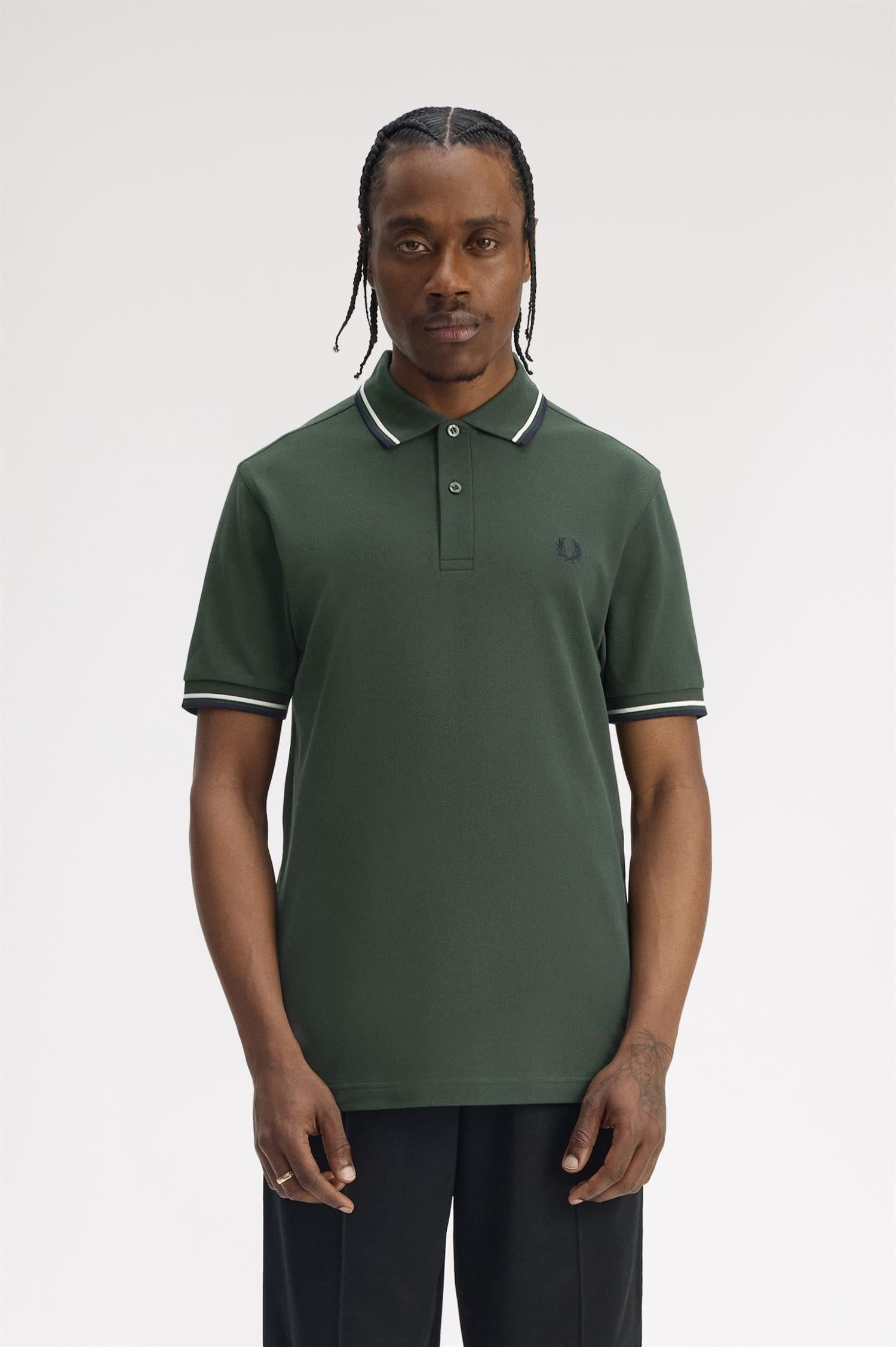 Twin Tipped FP Shirt fra Fred Perry. Den ikoniske Twin Tipped FP Shirt fra Fred Perry kombinerer klassisk stil med moderne detaljer. Laget av myk, pustende bomullspiqué i en regular fit. Designet inkluderer tvillingtippede krager og mansjetter og to-knapps stolpe. Et tidløst plagg i 100% bomull, perfekt for en avslappet, men sofistikert look. Normal i størrelsen.