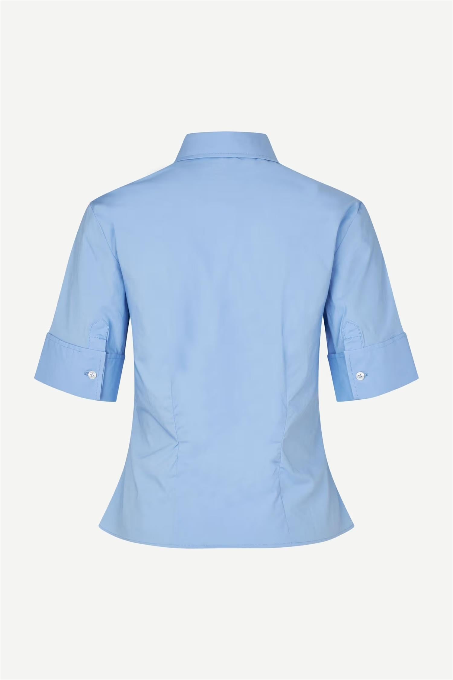Sasky SS Shirt 15902 fra Samsøe & Samsøe. Sasky SS Shirt 15902 i fargen Bel Air Blue er en stilren og anvendelig skjorte som passer like godt til hverdags som til mer pyntede anledninger. Skjorten har et moderne uttrykk og en behagelig passform, og er laget i en myk bomullskvalitet med stretch som gir god bevegelighet. Et tidløst plagg som enkelt kan styles med både jeans, skjørt eller dressbukser. Normal i størrelsen.