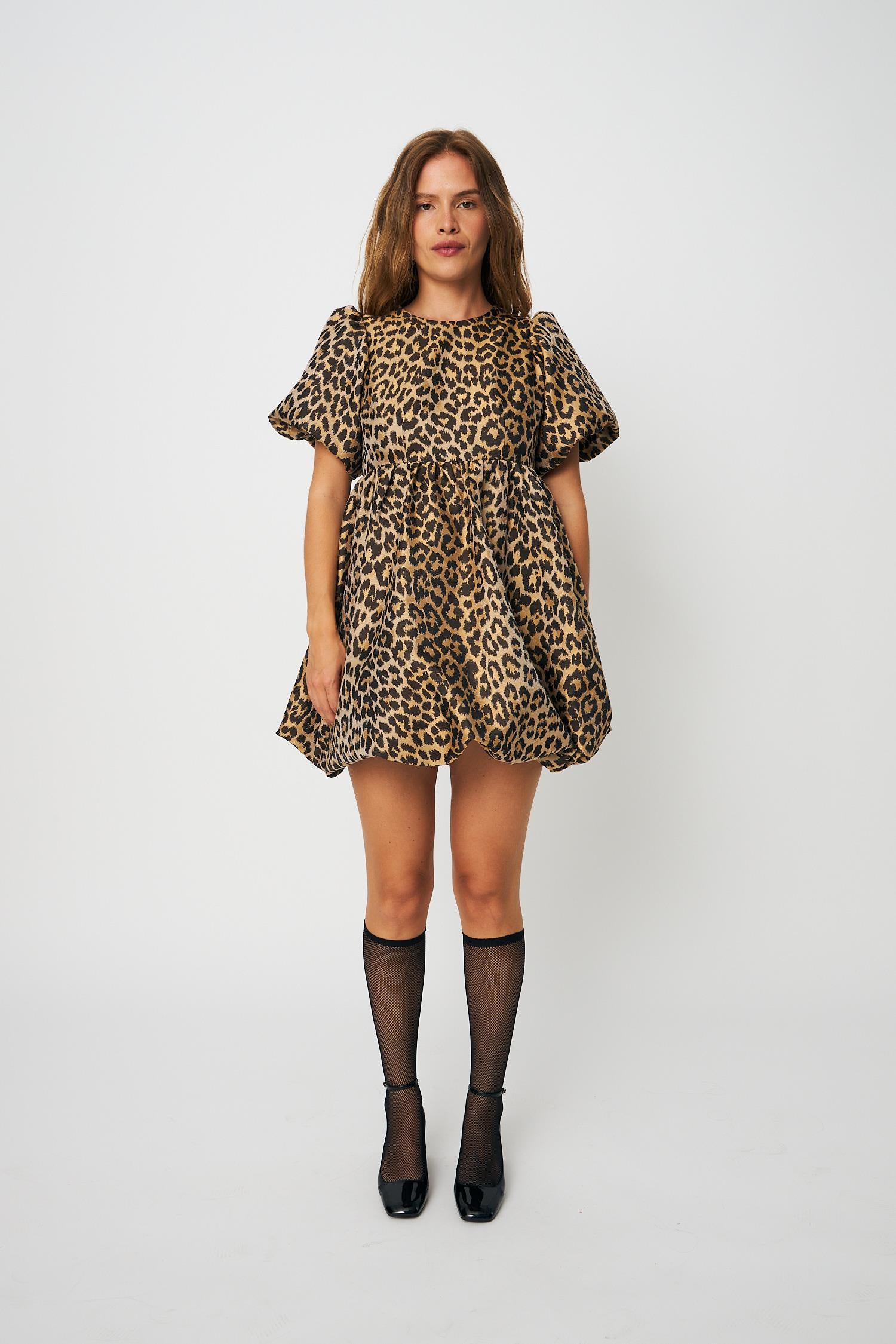 Jamillacras Dress fra Cras. Jamillacras Dress er en kort kjole med heldekkende leopardmønster som gir et lekent og moderne uttrykk. Designet har korte ermer og en lett utsvingt silhuett som skaper fin bevegelse og en flatterende passform. Normal i størrelsen.