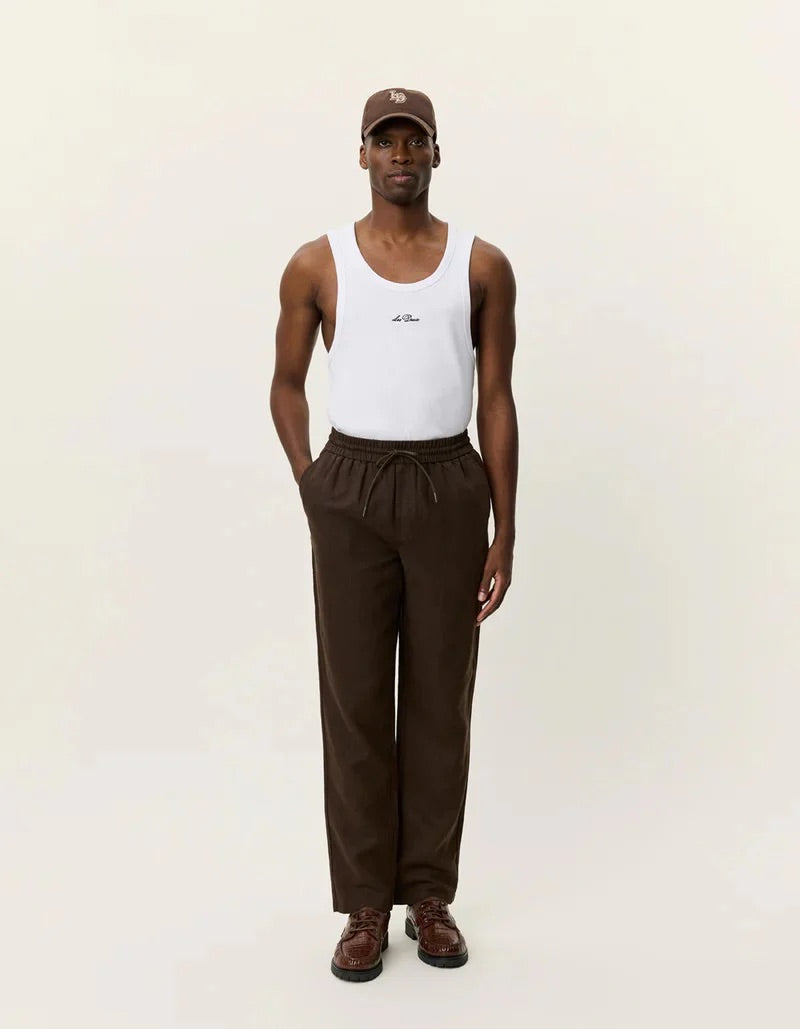Patrick Linen Pants fra Les Deux. Patrick Linen Pants er klassiske linbukser med en løs passform, laget i en luftig linblanding med stretchy snøring i midjen for optimal komfort. Buksen har sidelommer, baklommer og en lett droppet skritt, samt en brodert Encore-logo på baksiden. Perfekte for en avslappet, men sofistikert stil. Normal i størrelsen.