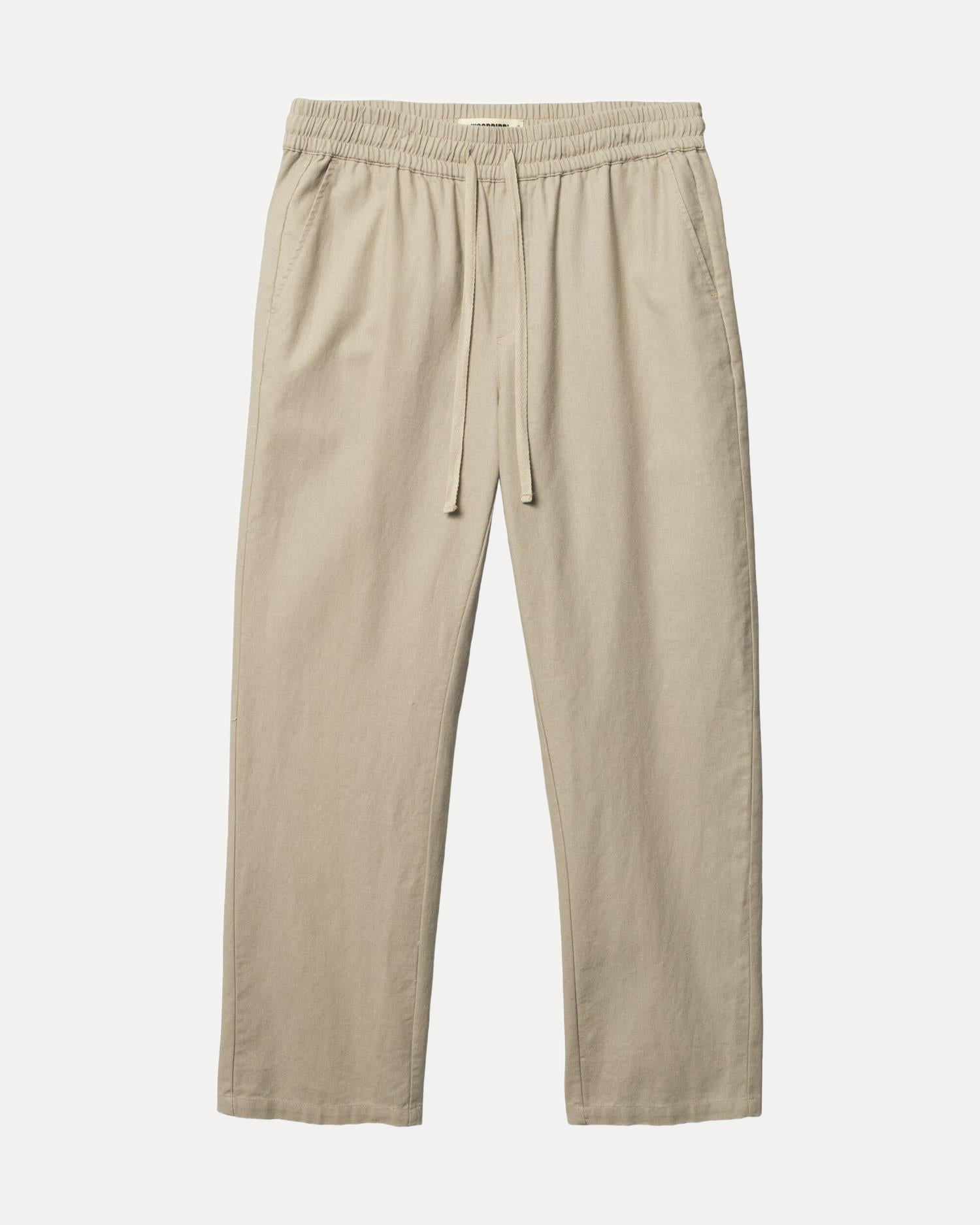 Wbeik Linen Pant fra Woodbird. WBEik Linen Pant er en avslappet og anvendelig linbukse med et tidløst uttrykk. Buksen har snøring i livet og en løs passform med rette ben. Praktiske side- og baklommer gjør den både funksjonell og behagelig i bruk. Laget i en lett og pustende blanding av lin og bomull, er dette en bukse som passer perfekt til varme dager og avslappede anledninger – enkel å bruke. Normal i størrelsen.