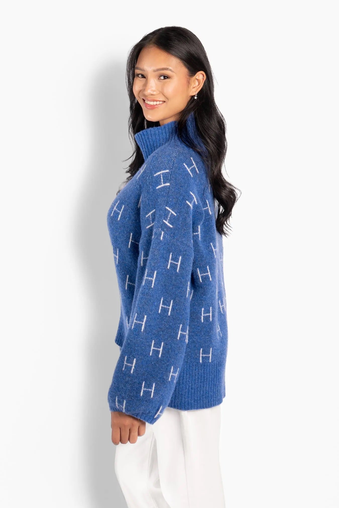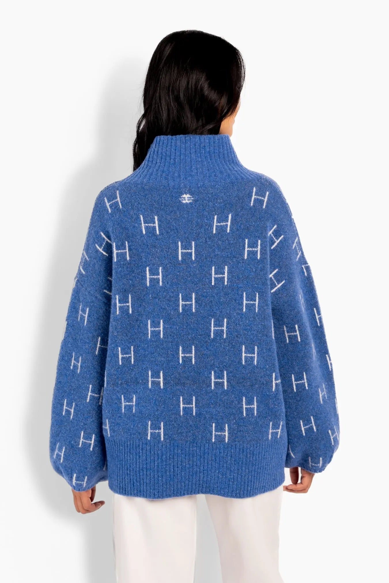 FAM Short Sweater fra Hést. FAM Short Sweater er en bestselgende signaturgenser fra Hést med et avslappet og elegant uttrykk. Den er strikket i en myk og eksklusiv kvalitet og har høy hals, voluminøse ermer og et karakteristisk H-mønster som gir et moderne og gjennomført preg. Genseren er kortere foran og noe lengre bak, noe som skaper en flatterende og balansert silhuett. En lett, myk og anvendelig genser som er enkel å style – og som raskt blir en favoritt i garderoben. Normal i størrelsen.