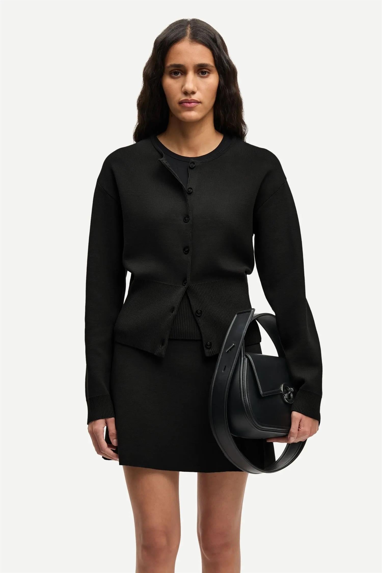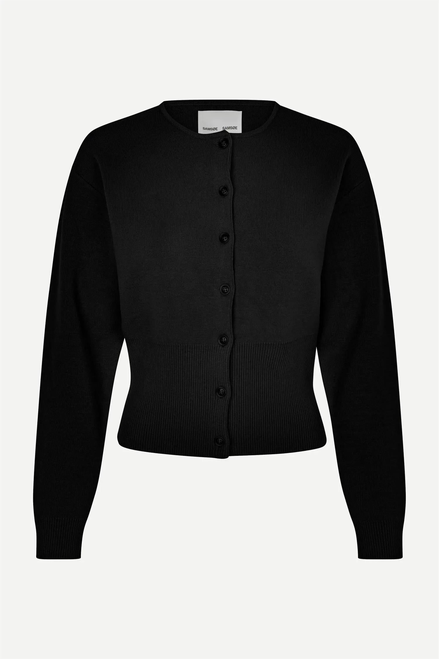 Saanne Cardigan 15825 fra Samsøe & Samsøe. Saanne Cardigan er en strikket cardigan med regular fit og et rent, tidløst uttrykk. Designet har knappelukking i front, rund hals og ribbestrikkede kanter ved krage, mansjetter og fald som gir en strukturert finish. Den elastiske kvaliteten gjør plagget komfortabelt og enkelt å style til både hverdag og jobb. Normal i størrelsen.