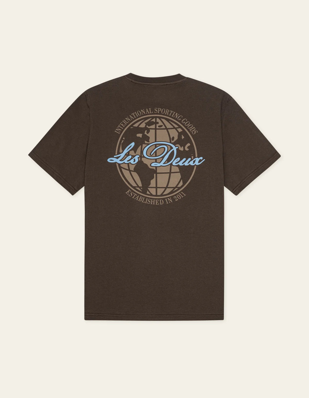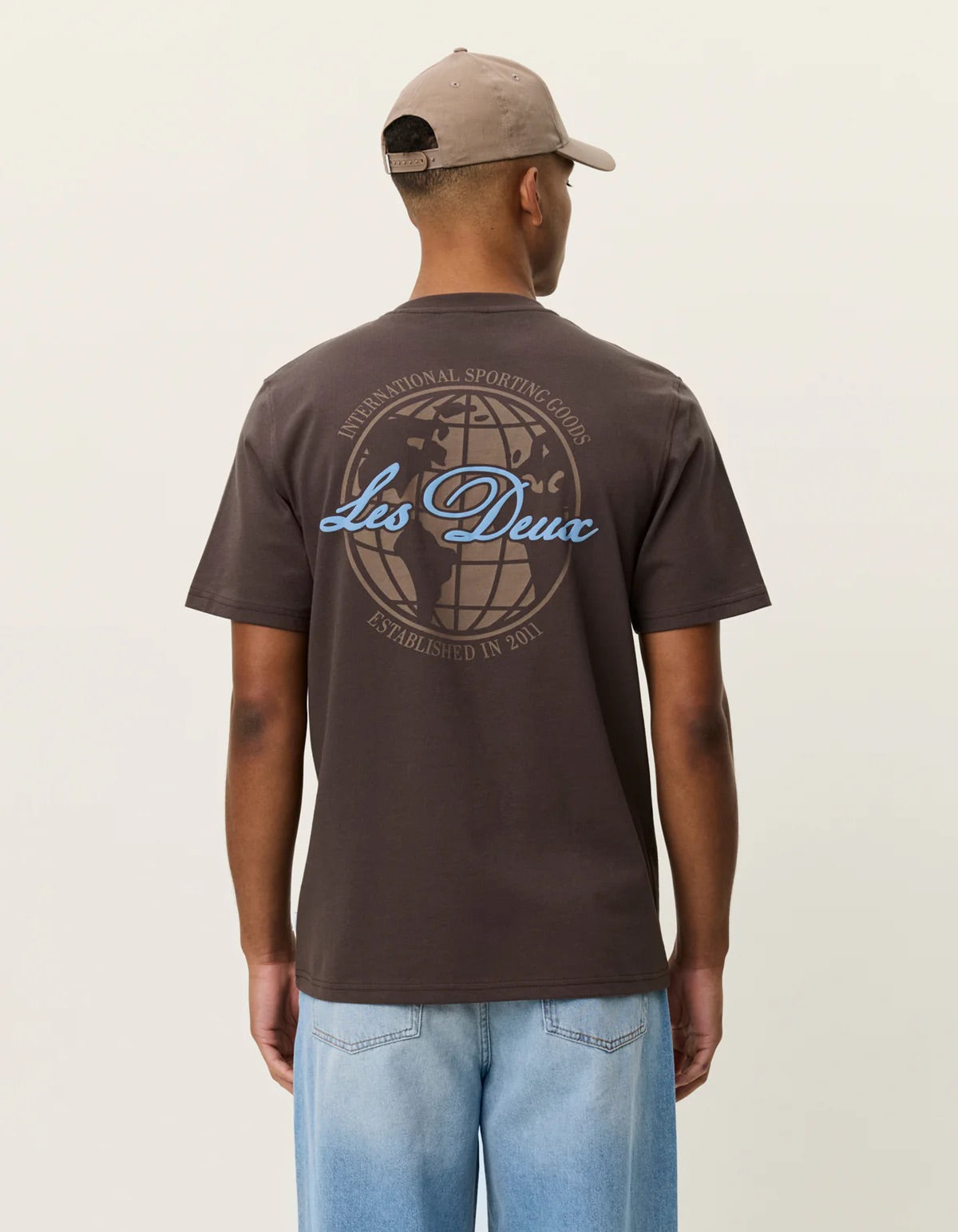 Ben Globe T-Shirt fra Les Deux. Ben Globe T-Shirt er en stilren t-skjorte med et moderne, grafisk uttrykk. Den har klassisk rund hals og er dekorert med en ren, tofarget globuslogo trykt både på brystet og over ryggen, som gir et gjennomført og tidløst preg. En allsidig basefavoritt som passer like godt til hverdagsbruk som til mer avslappede antrekk. Normal i størrelsen.