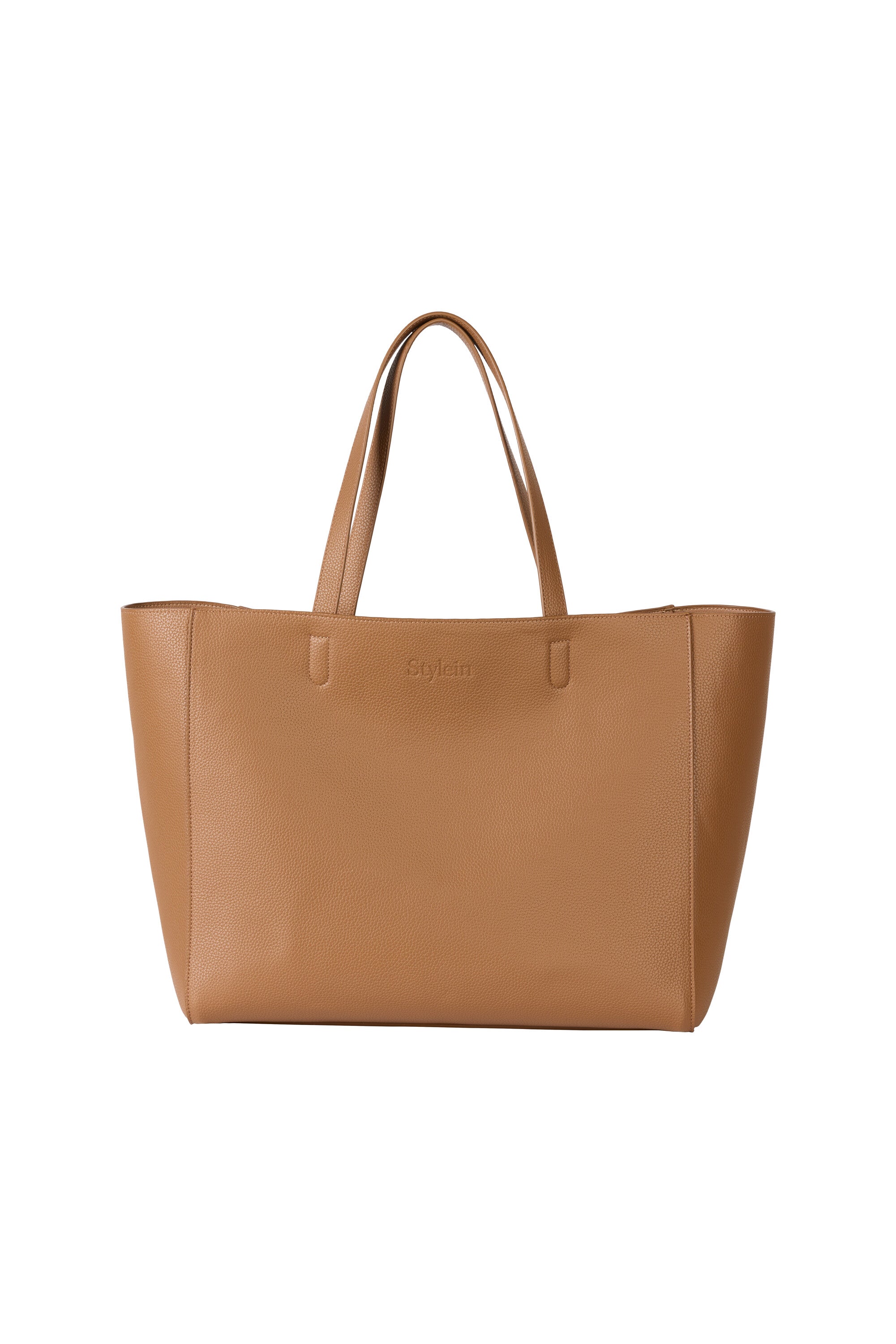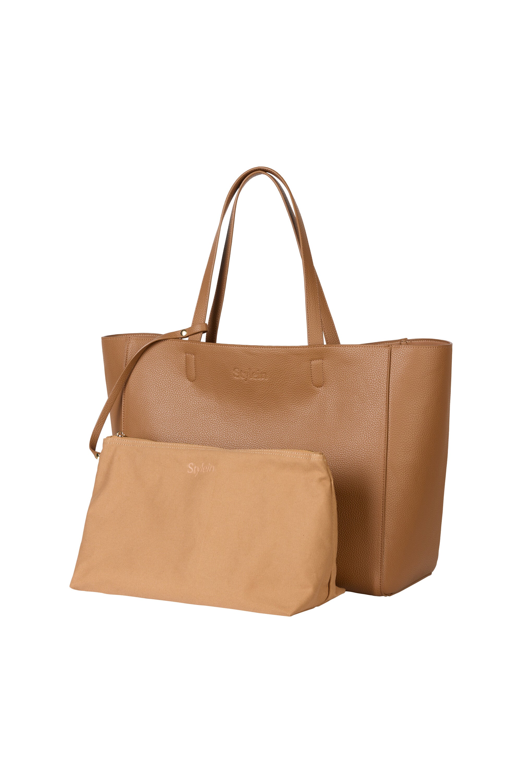 Yacht Bag Grain fra Stylein. Yacht er en praktisk og romslig totebag designet for en travel hverdag. Vesken leveres med en avtagbar innerpouch med glidelås som holder det viktigste organisert og trygt. Den klassiske shopper-silhuetten har en forsterket bunnplate som gir god stabilitet, og er preget med Stylein-logo foran. Laget i vegansk skinn med strukturert grain-finish.