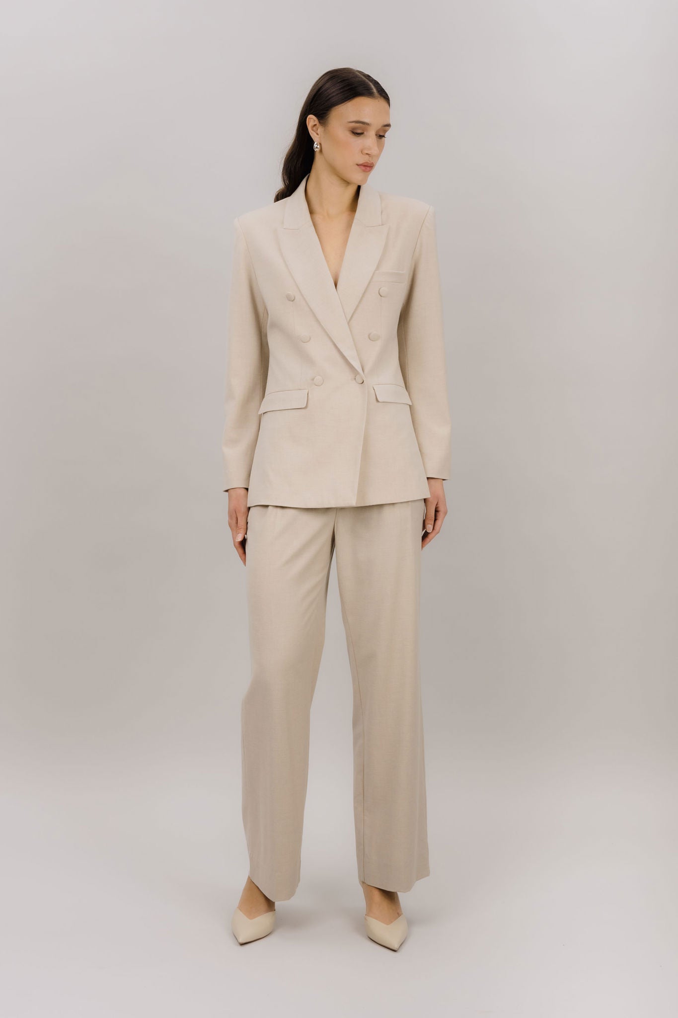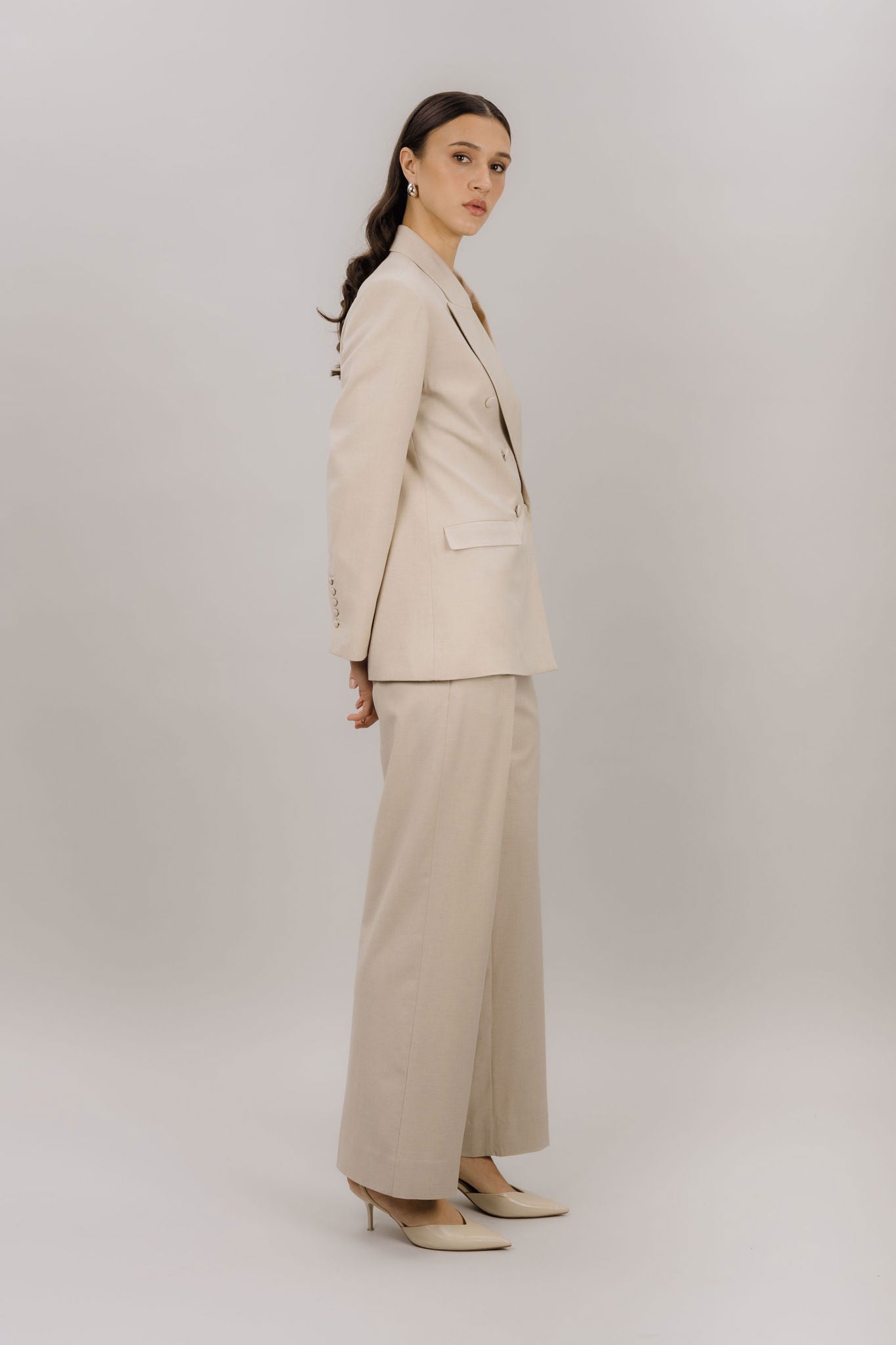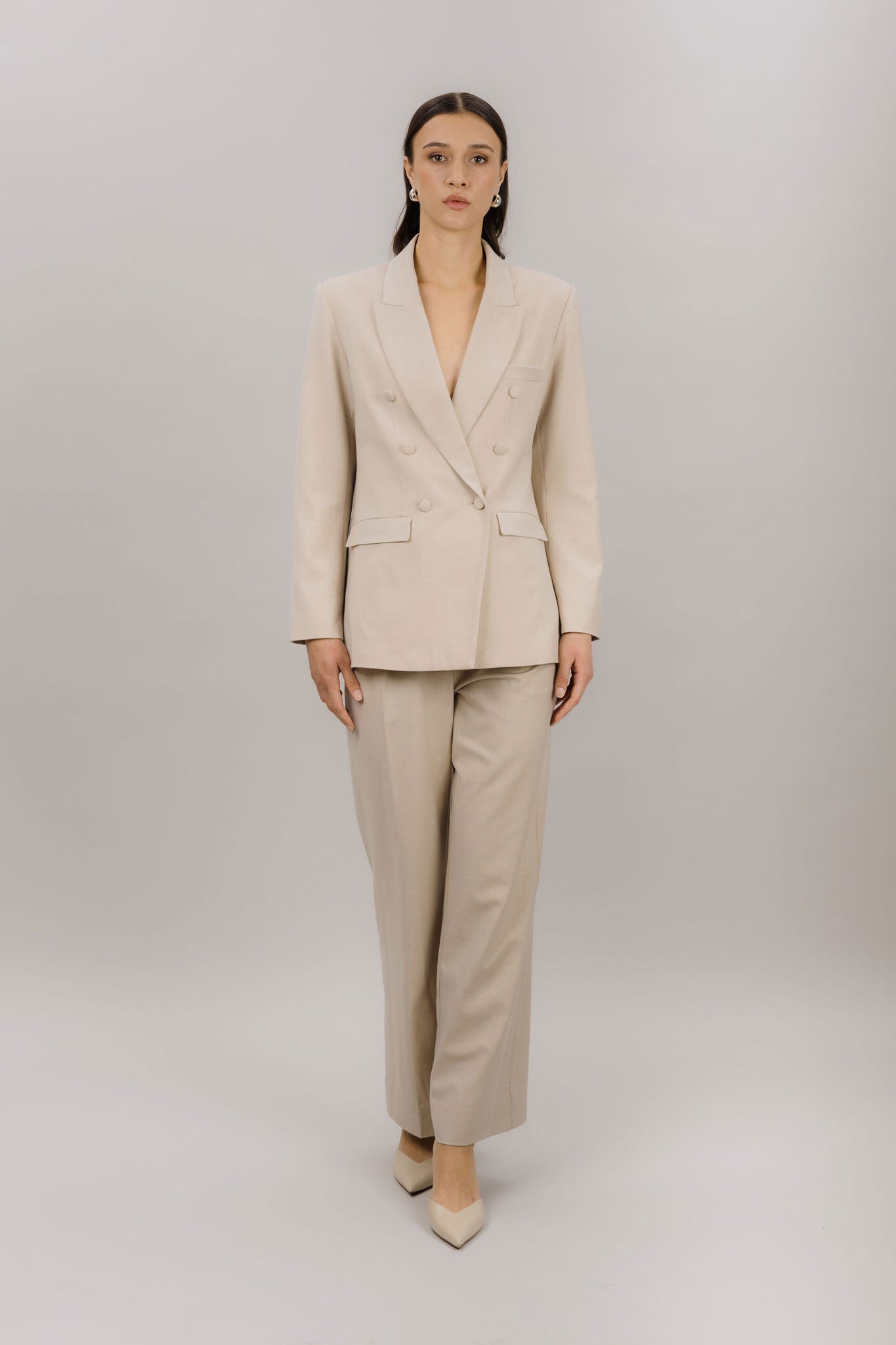 Ekinsu Pants fra Urban Pioneers. Ekinsu Pants er en stilren bukse med et tidløst og elegant uttrykk. Designet har en flatterende passform som gir et sofistikert preg, samtidig som materialblandingen sørger for god komfort og bevegelighet gjennom dagen. Buksen kan styles alene eller kombineres med Ekinsu Blazer for et komplett og gjennomført sett. Normal i størrelsen.