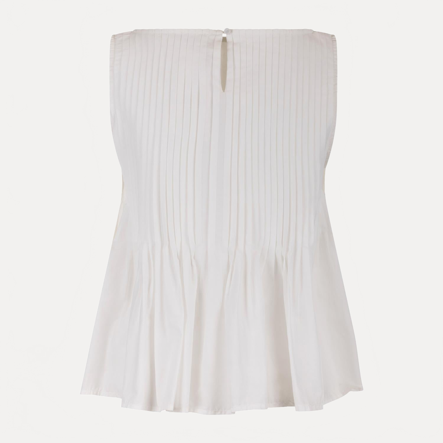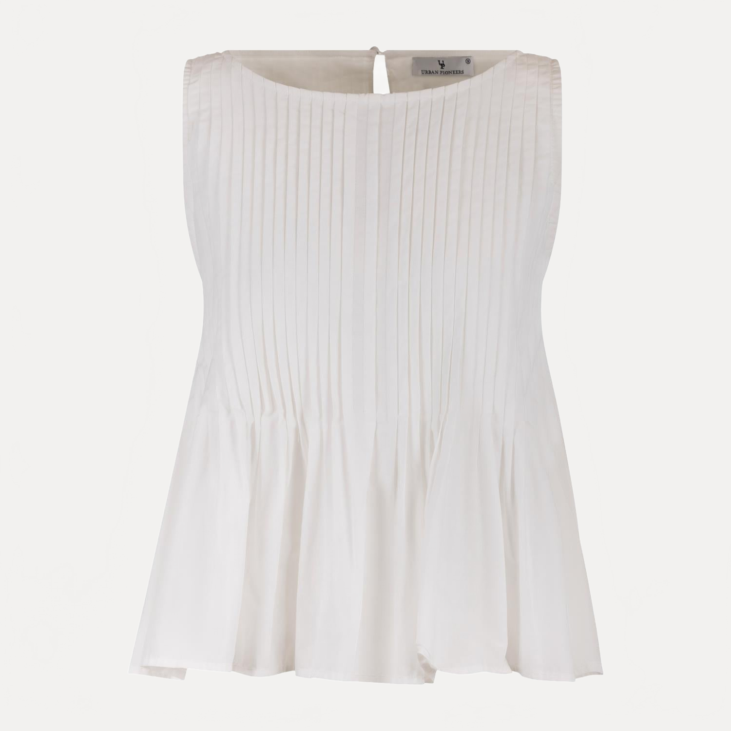 Noemi Top fra Urban Pioneers. Noemi Top er en elegant topp med et rent og moderne uttrykk. Designet har rund hals og delikate folder over brystet som gir struktur til silhuetten. Toppen faller ut i en lett utsvinget kant som skaper bevegelse og et feminint preg. Det ermeløse snittet og den avslappede passformen gjør den enkel å style både til hverdags og mer oppdressede anledninger.