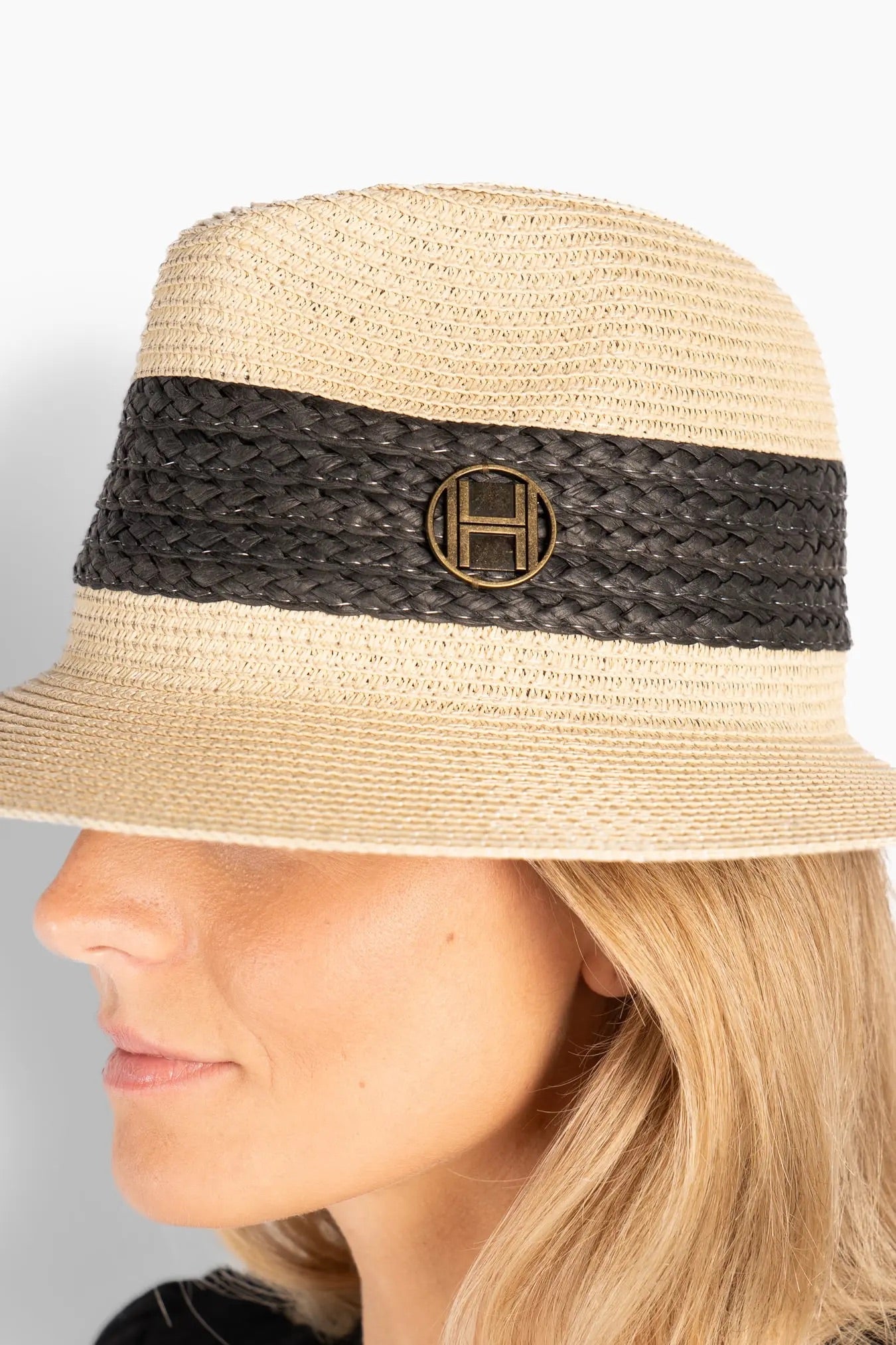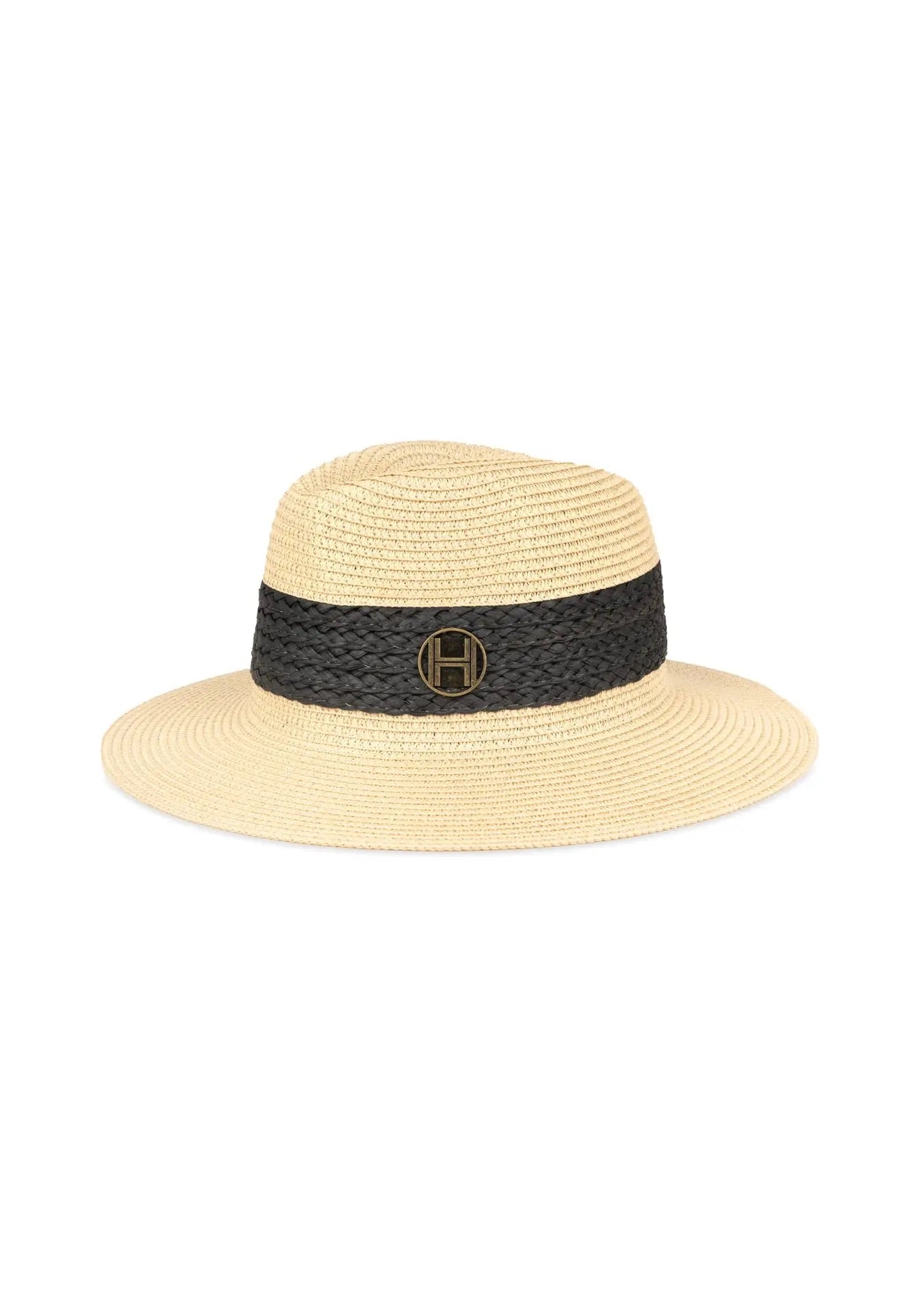 Allesandra Hat fra Hést. Allesandra Hat er en lekker sommerhatt med klassisk, strukturert form og bred brem som gir god beskyttelse mot solen. Hatten er laget i lett og pustende papirstraw og er dekorert med et kontrastfarget vevd bånd og en diskret HÉST-logo i metall. Et elegant tilbehør som gir antrekket et avslappet sommerpreg. Onesize.