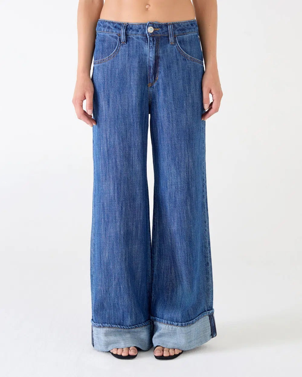 Jeans Roll Wide Leg Denim