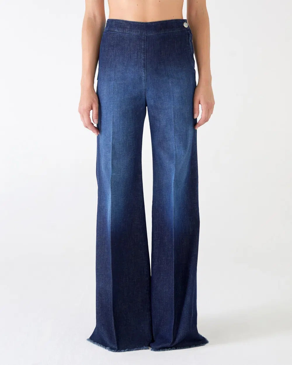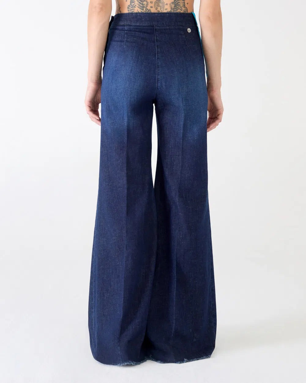 Milly Bootcut Denim Lino Jeans fra Shaft. Milly Bootcut Denim Lino Jeans er en ikonisk jeans med høy midje og kraftig utsvingte ben som skaper en markert og flatterende silhuett. Designet er uten lommer for et rent og stilrent uttrykk, mens denimkvaliteten med lin gir både struktur og komfort. Produsert i Italia med fokus på kvalitet og karakteristisk Shaft-stil.