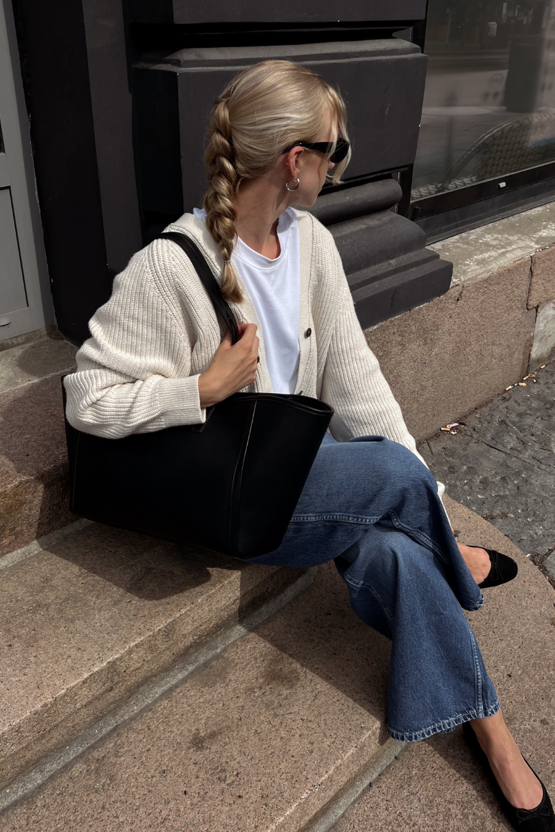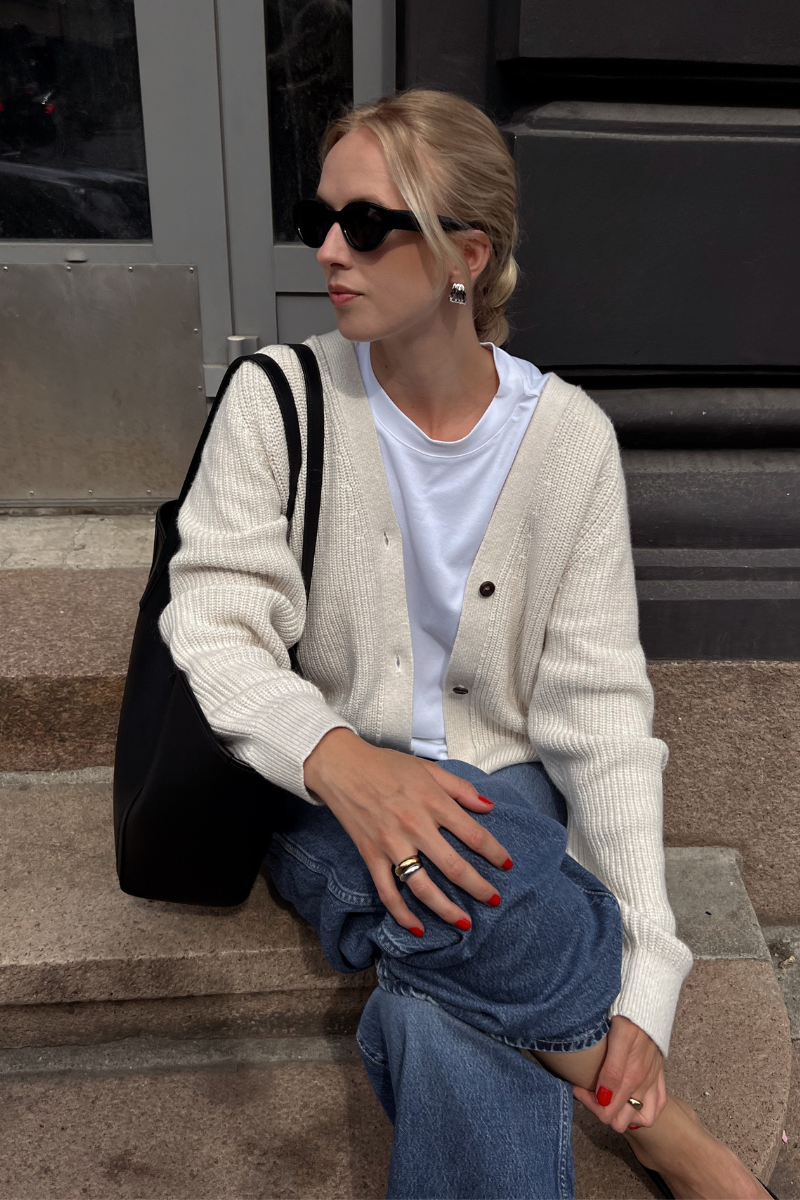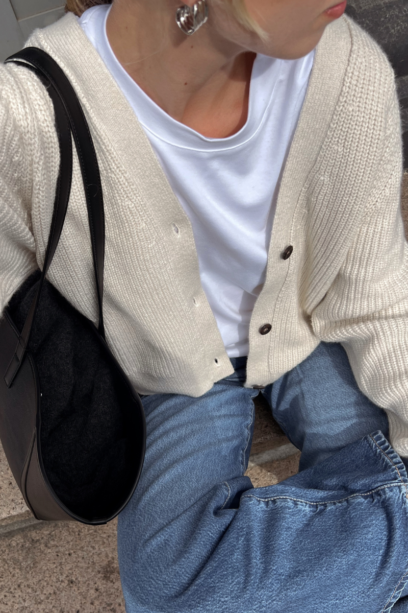Mouline Rib Relaxed Cardigan fra Calvin Klein. En tidløs og allsidig cardigan fra Calvin Klein, designet i en myk ribbestrikket kvalitet med klassiske knapper i front. Cardiganen har en avslappet, litt boxy passform som gir et moderne uttrykk, og er like fin å bruke lukket som åpen over en enkel topp eller kjole. Normal i størrelsen, men ønsker du en mer oversized look, anbefaler vi å gå opp én størrelse.