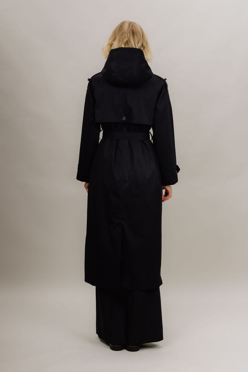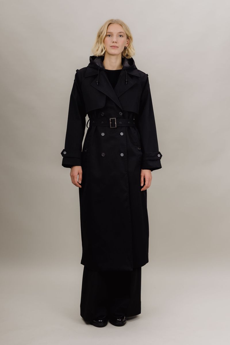 Fadoua Trench Coat fra Urban Pioneers. Faodoua Trench Coat er en trendy, lang trench coat som kombinerer stil og funksjon. Denne tekniske jakken er designet for å holde deg tørr og komfortabel i all slags vær. Med en vanntetthet på 8 000 mm, pusteevne på 5 000 g/m²/24h og tapede sømmer, er jakken helt vanntett. Den har et dobbeltspent design, belte i livet og praktiske lommer, noe som gjør den perfekt for både regnfulle dager og til hverdagsbruk. Normal i størrelsen.