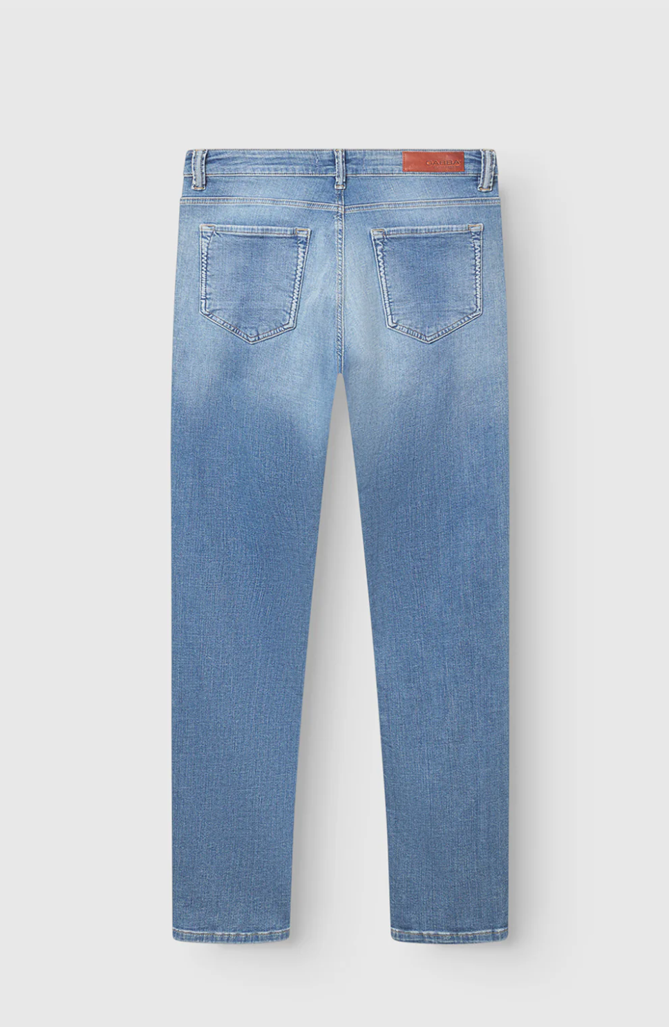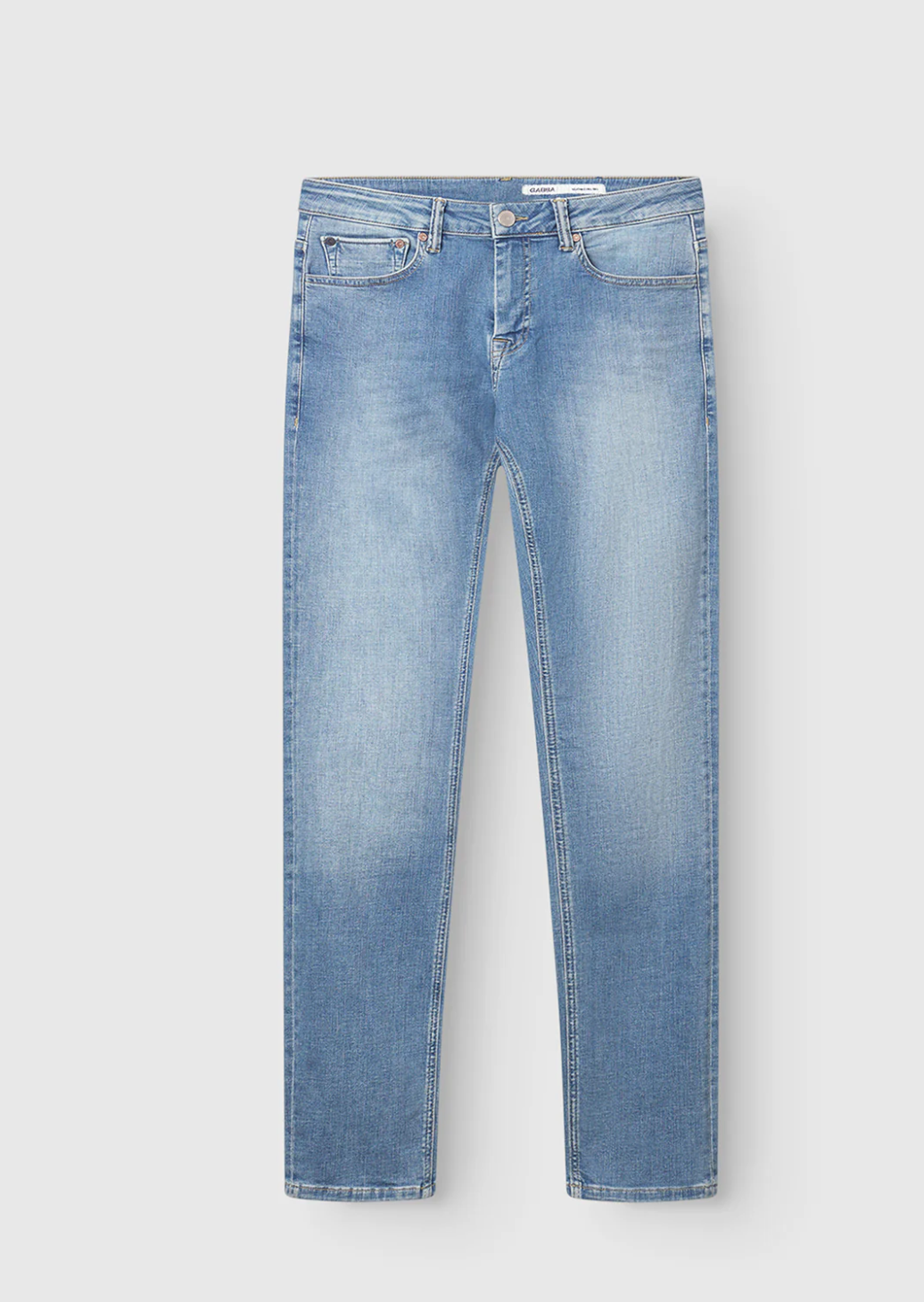 Jones K2615 Lt. fra Gabba. Jones Jeans har en slim passform med høy fleksibilitet og komfort. Forsterkede lommer og super-stretch stoff gir en perfekt passform for alle. Den smale, rette benformen gjør jeansene like fine til både hverdags og mer oppstylte antrekk. Normal i størrelsen.