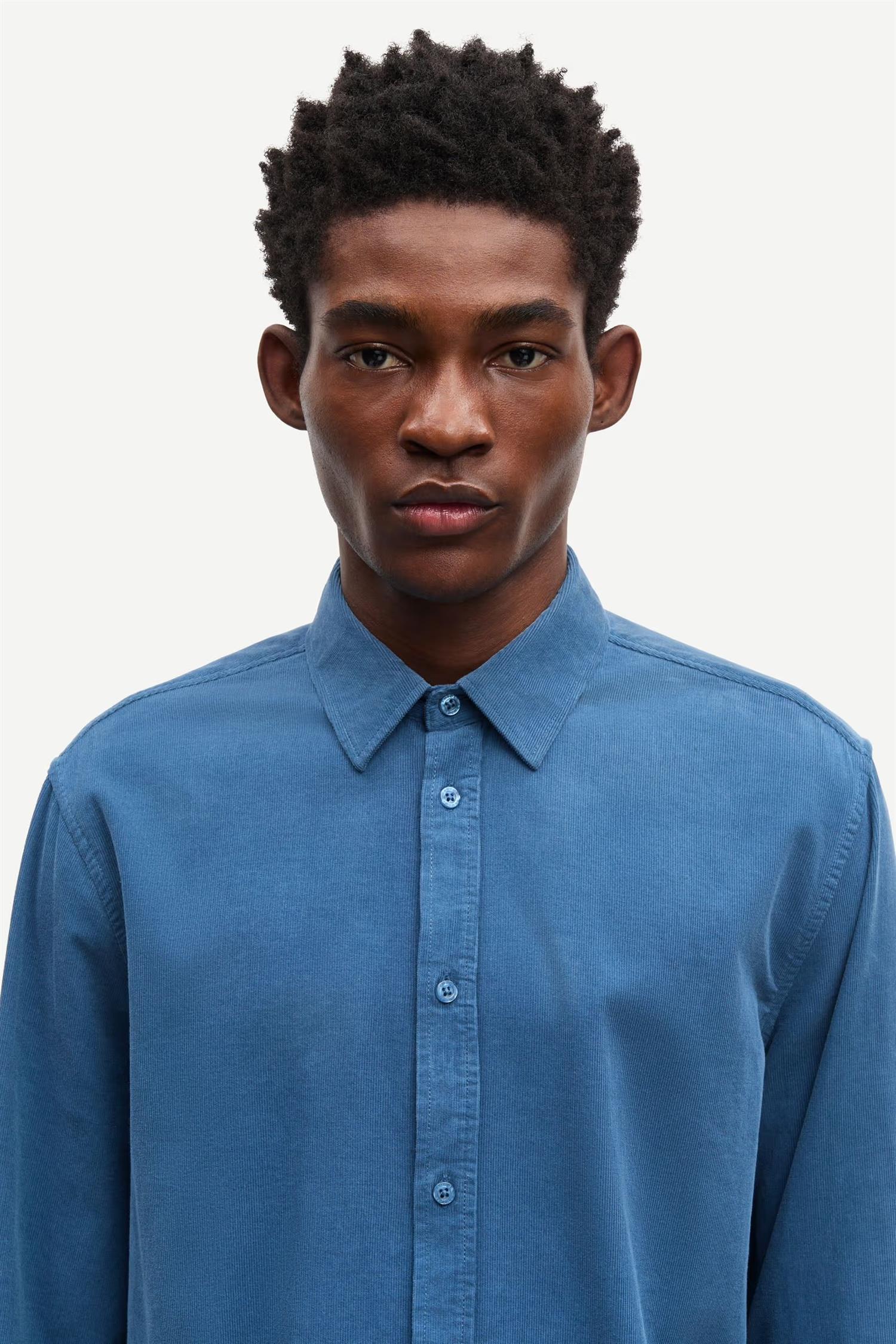 Saliam NX Shirt 10504 fra Samsøe & Samsøe. Saliam NX Shirt 10504 er en kordfløyelsskjorte med klassisk, regular passform. Den har knappelukking i front, mansjetter med knapper, og et bærestykke med plissert detaljering for en subtil og raffinert look. Skjorten har avrundet fald og er laget av 100% økologisk bomull. Normal i størrelsen.