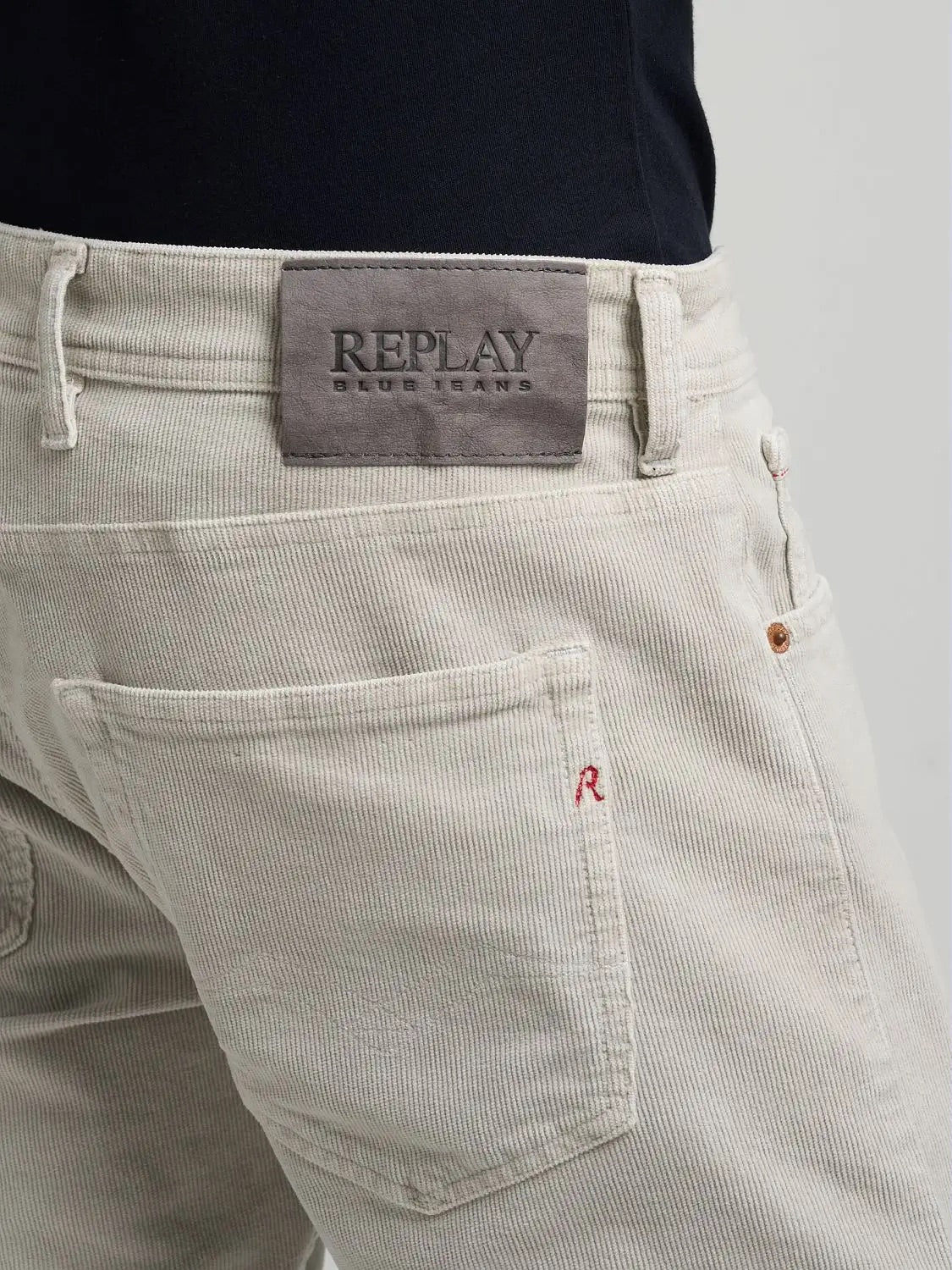 Grover Corduroy Trousers fra Replay. Grover Corduroy Trousers er rette bukser med normal livhøyde, laget i myk, plaggfarget cordfløyel med stretch for ekstra komfort. Klassisk femlommersdesign med ikoniske vingesømmer på baklommene – den ene med brodert R. Fullført med en logoetikett bak og en spesialdesignet detalj på en av frontlommene. Lukkes med knapper. Normal i størrelsen.