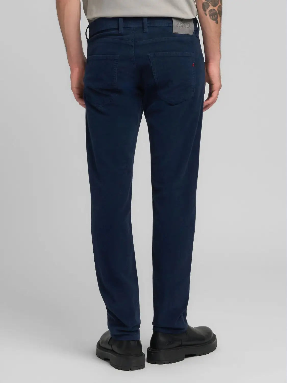 Grover Corduroy Trousers fra Replay. Grover Corduroy Trousers er rette bukser med normal livhøyde, laget i myk, plaggfarget cordfløyel med stretch for ekstra komfort. Klassisk femlommersdesign med ikoniske vingesømmer på baklommene – den ene med brodert R. Fullført med en logoetikett bak og en spesialdesignet detalj på en av frontlommene. Lukkes med knapper. Normal i størrelsen.