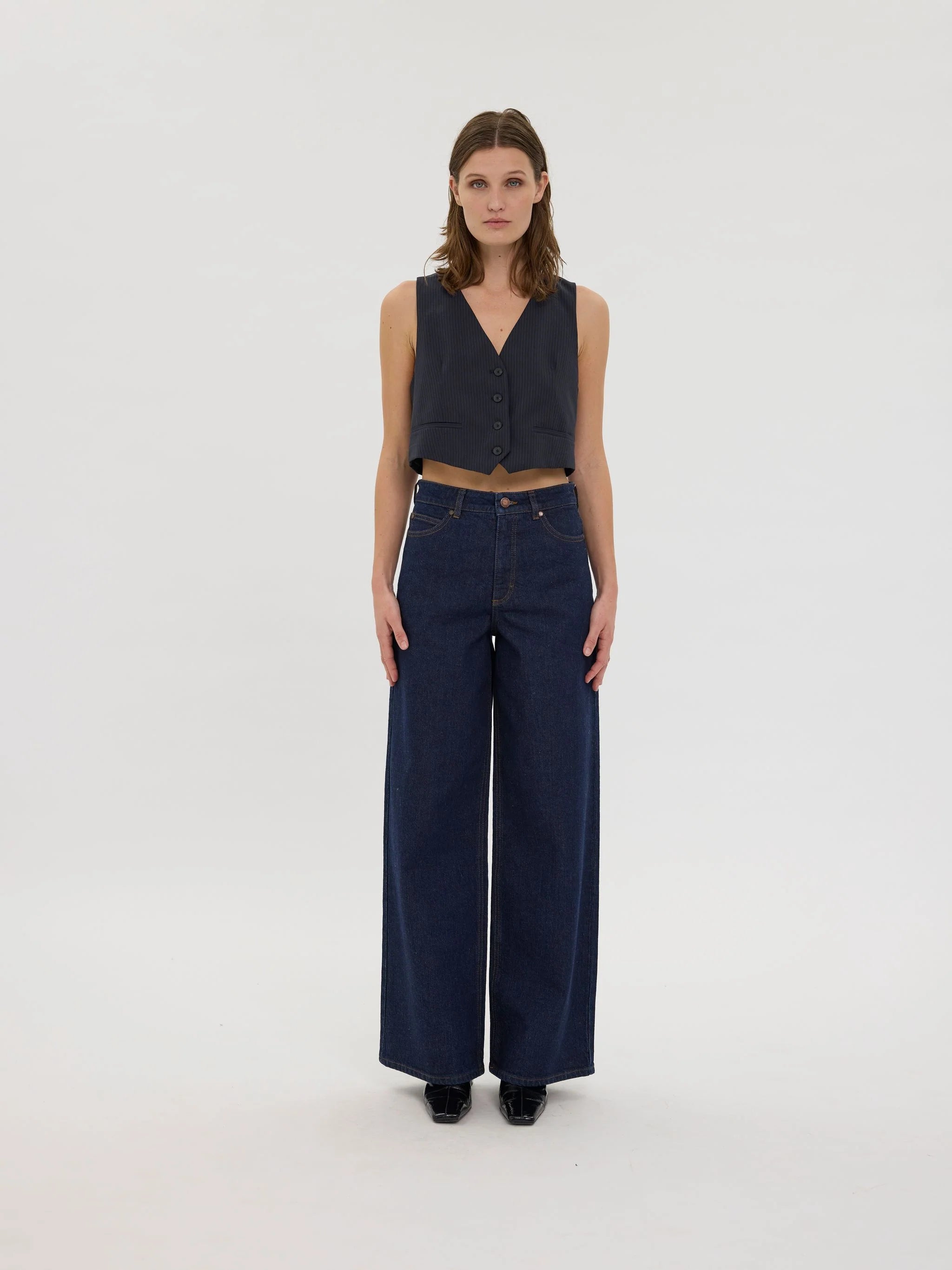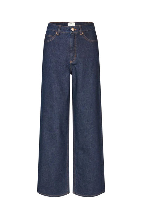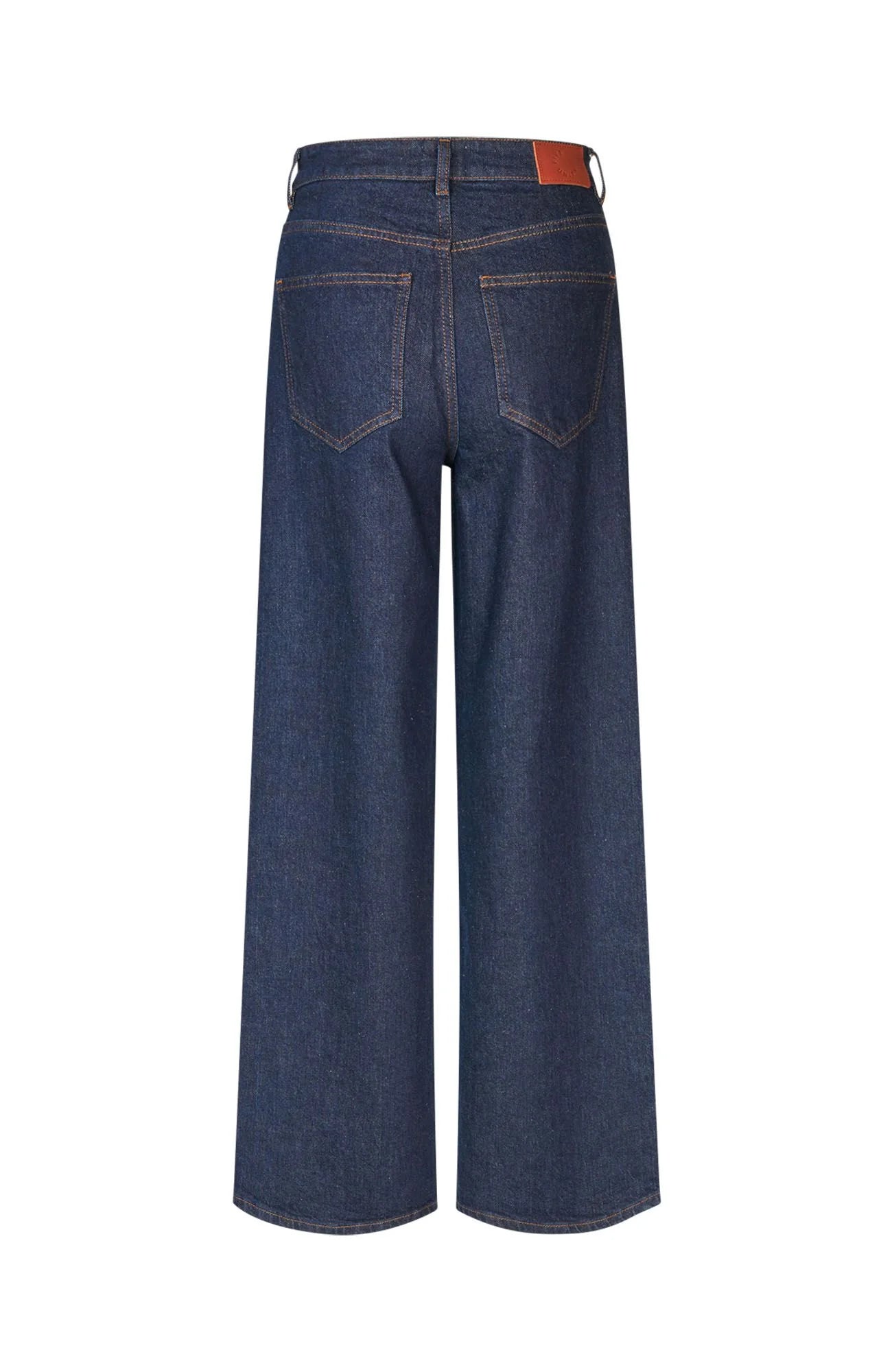 AbbyFV 745 Long - Dark Rinse Denim fra Five Units. AbbyFV 745 Long Dark Rinse er stilrene jeans med fem lommer og høy midje. De har en vid passform som gir en avslappet følelse, mens den rette benfasongen skaper et tidløst og allsidig uttrykk. Jeansen er laget i premium denim med akkurat passe stretch, noe som gir god bevegelighet uten å gå på bekostning av den strukturerte looken. Perfekte til både hverdags og mer pyntede anledninger. Normal i størrelse.