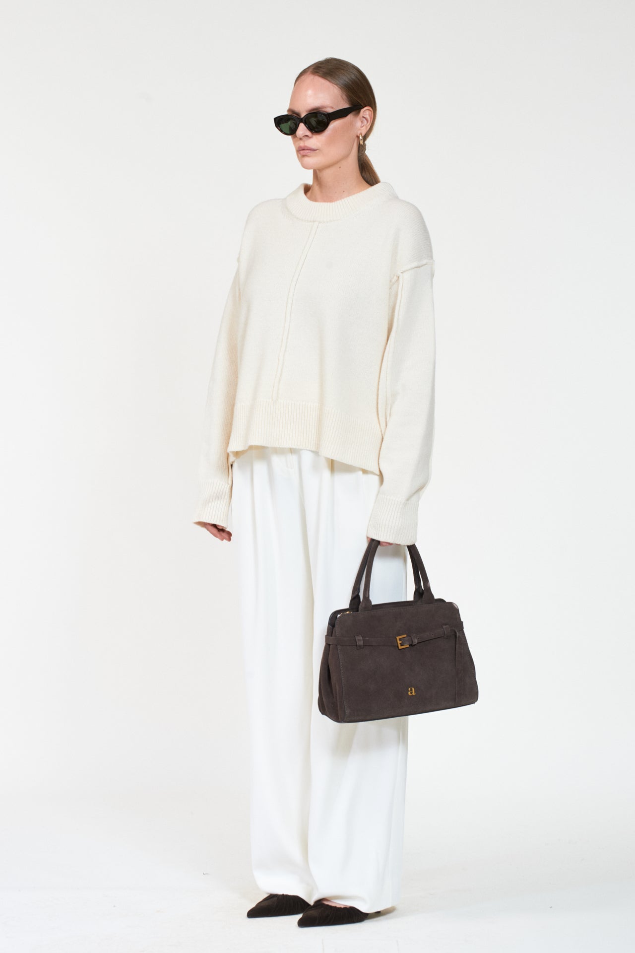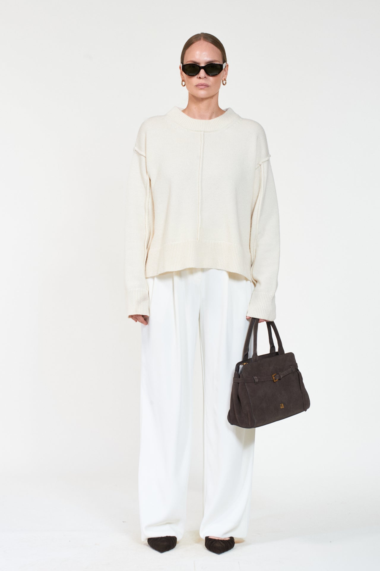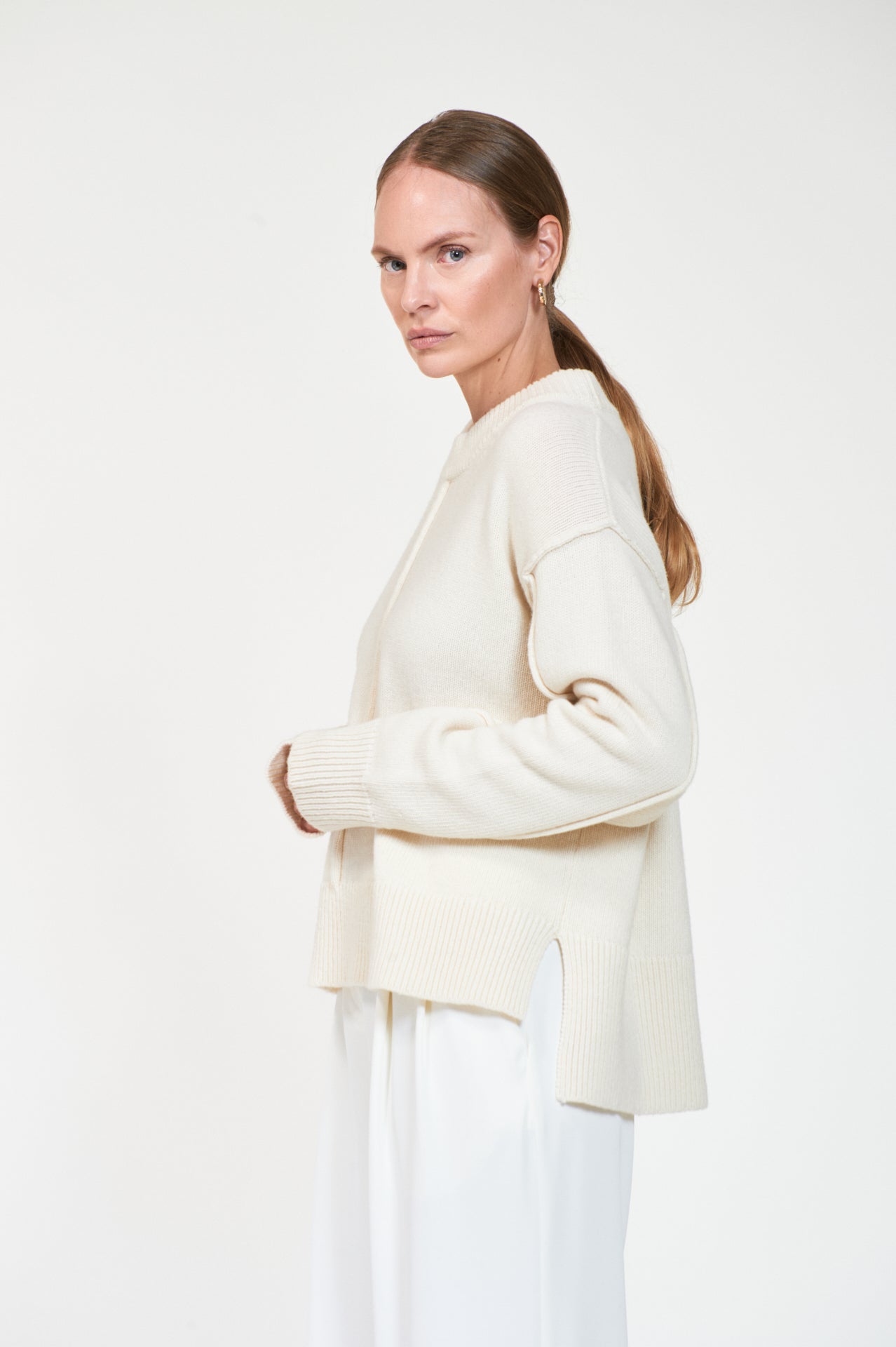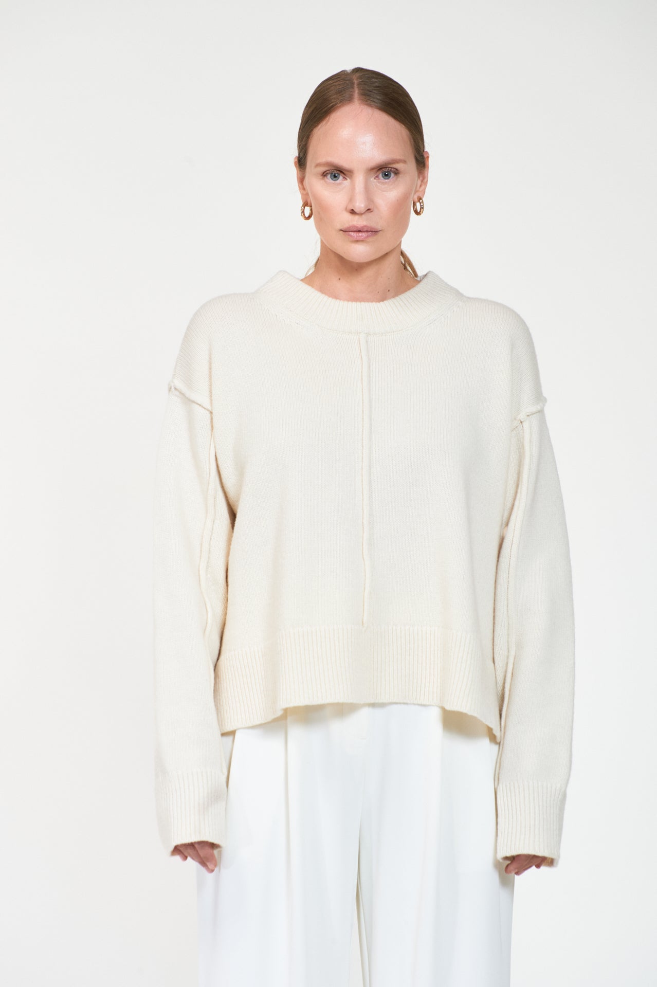 Ren Sweater fra Arnie Says. Ren Sweater er en chunky strikkegenser i en kompakt og myk ullblanding – perfekt for kalde dager. Den er designet med rund hals, dekorative vrangsømmer og nedfalne skuldre som gir et avslappet uttrykk. Splitter i sidene og en noe lengre bakside. Genseren har ribbestrikkede kanter på hem, mansjetter og hals, og kommer i en rett og romslig fasong som gjør den enkel å style til både bukser og skjørt. Normal i størrelsen.