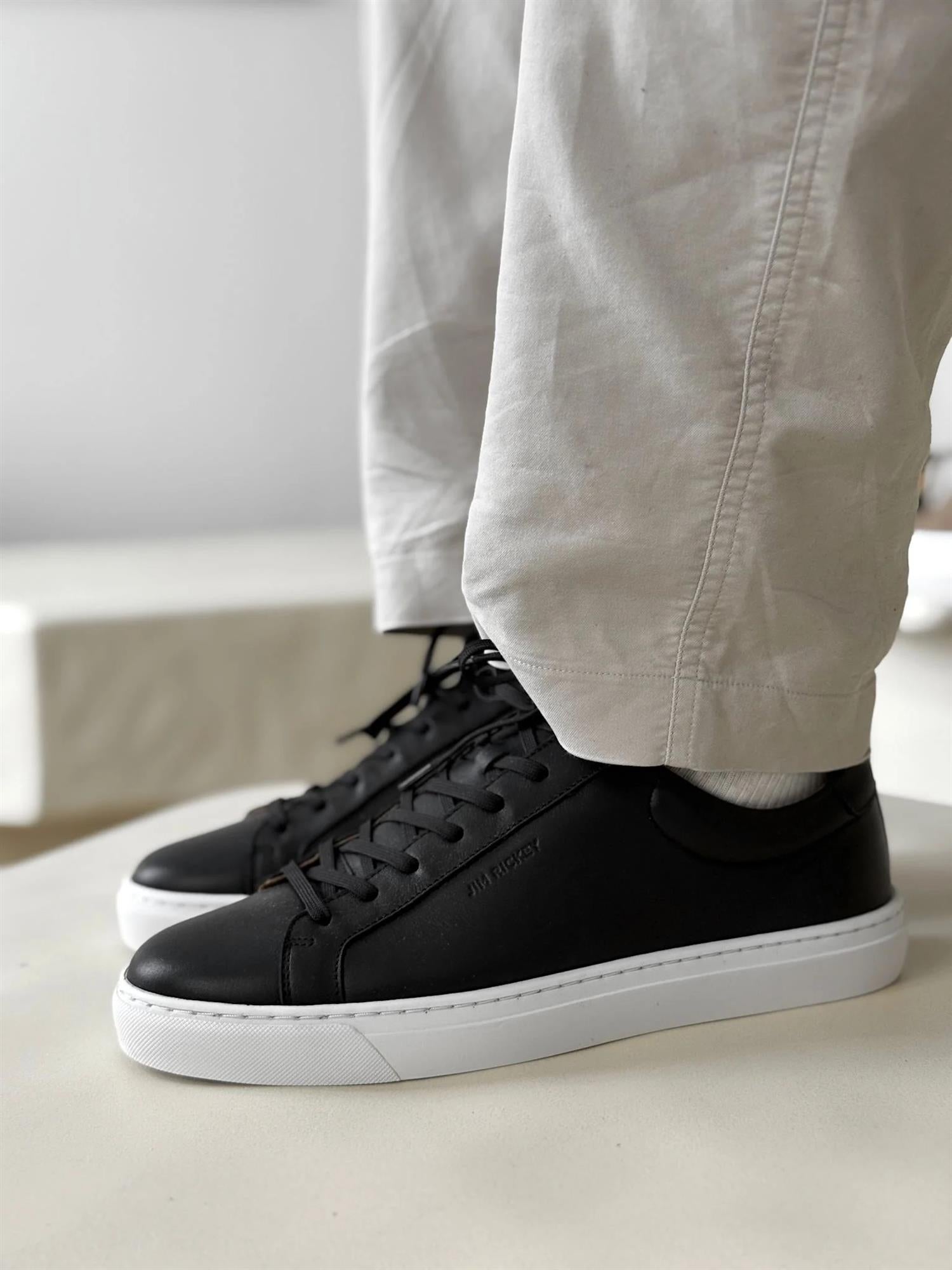Jim RickeySpin Leather fra Jim Rickey. Spin-sneakeren kombinerer minimalistisk design med slanke, skarpe linjer, og gir et stilrent uttrykk for både hverdag og mer formelle anledninger. Den er laget av høykvalitets italiensk skinn som gir et sofistikert utseende, og har en sydd gummisåle som sørger for både holdbarhet og komfort. Denne tidløse sneaksen passer perfekt til alt fra dine favorittjeans til en skreddersydd dress. Designet i Oslo og håndlaget i Portugal, er Spin-sneakeren et kvalitetsvalg for de som setter pris på både stil og komfort. Normal i størrelsen.