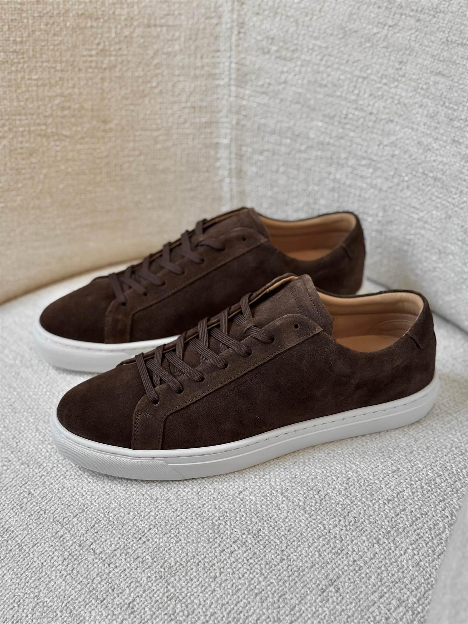 Jim RickeySpin Suede Sneakers fra Jim Rickey. Spin Suede sneaker er den perfekte kombinasjonen av minimalistisk design og tidløs stil. Laget i høykvalitets semsket skinn og med en sydd gummisåle, gir denne sneekeren et sofistikert uttrykk. De slanke, skarpe linjene gjør den til et ideelt valg for å skape elegante, urbane antrekk – enten du kombinerer den med favorittjeansene eller en skreddersydd dress. En tidløs klassiker!