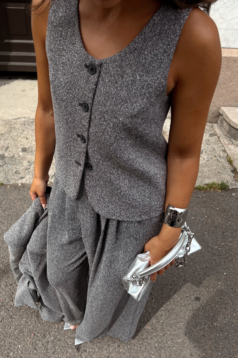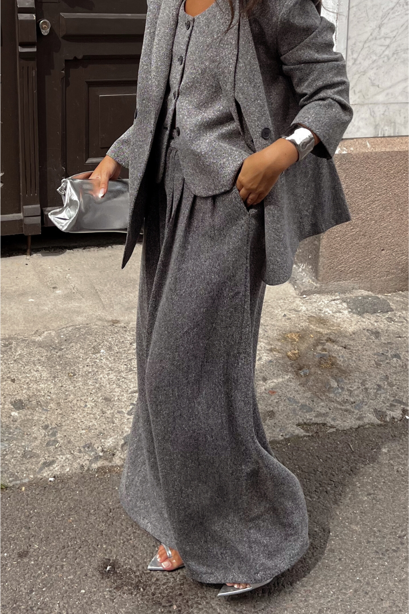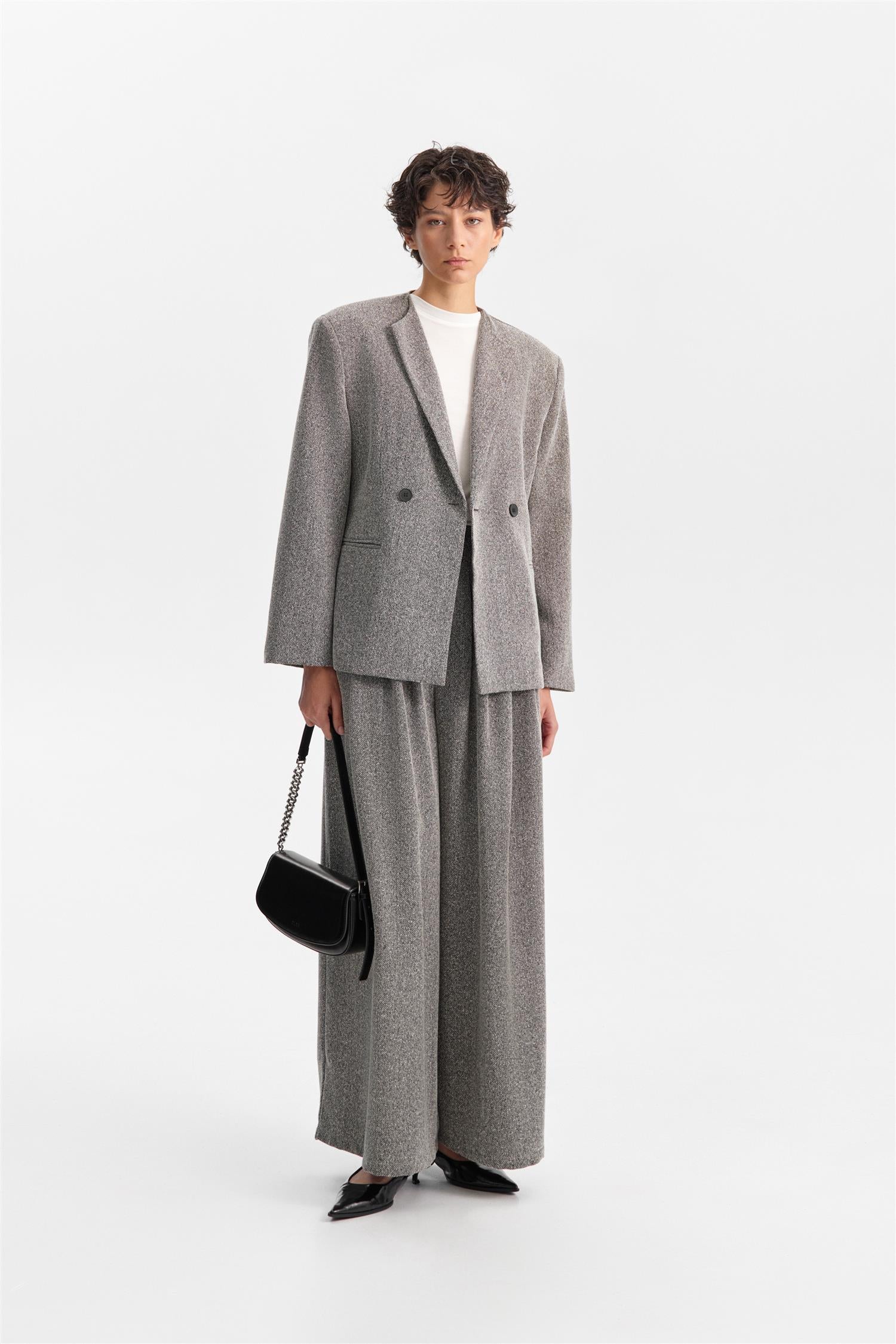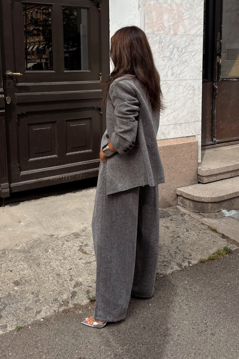 Structured Pants fra Eleh. Trendy og allsidige bukser i en vid modell designet med sidelommer, legg foran og klassisk lukking med knapp og glidelås. Perfekte å bruke alene for en avslappet stil, eller sammen med matchende vest og blazer for et komplett og gjennomført antrekk. Normal i størrelsen.