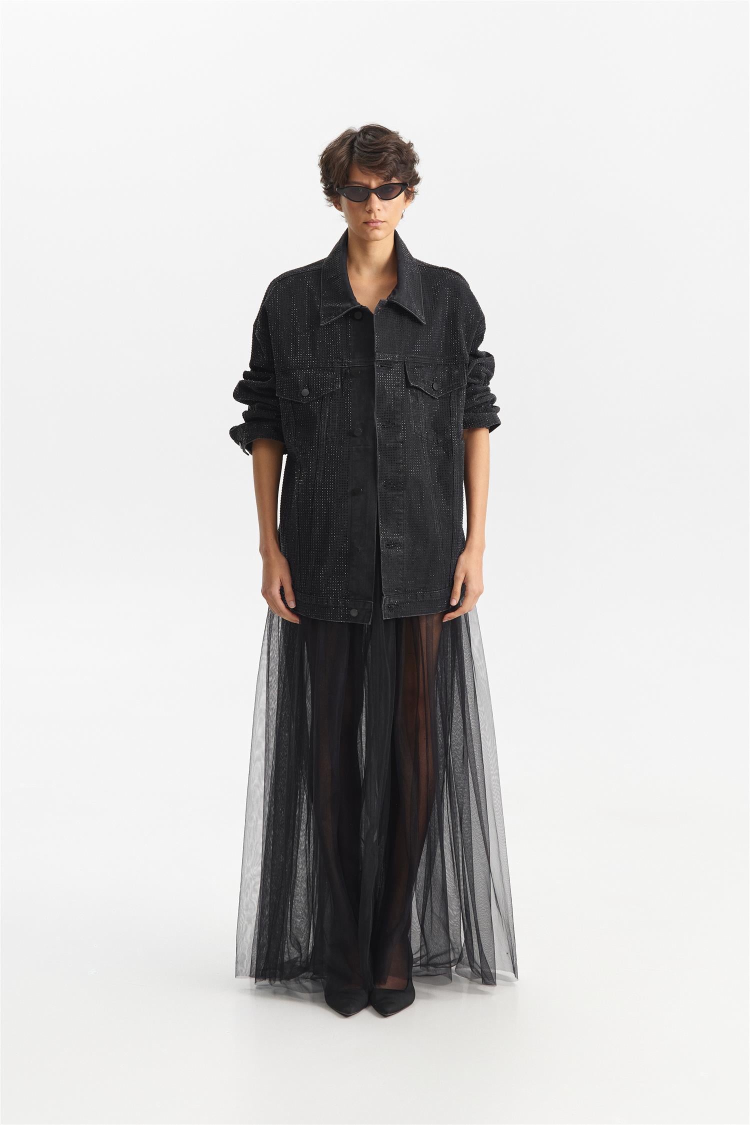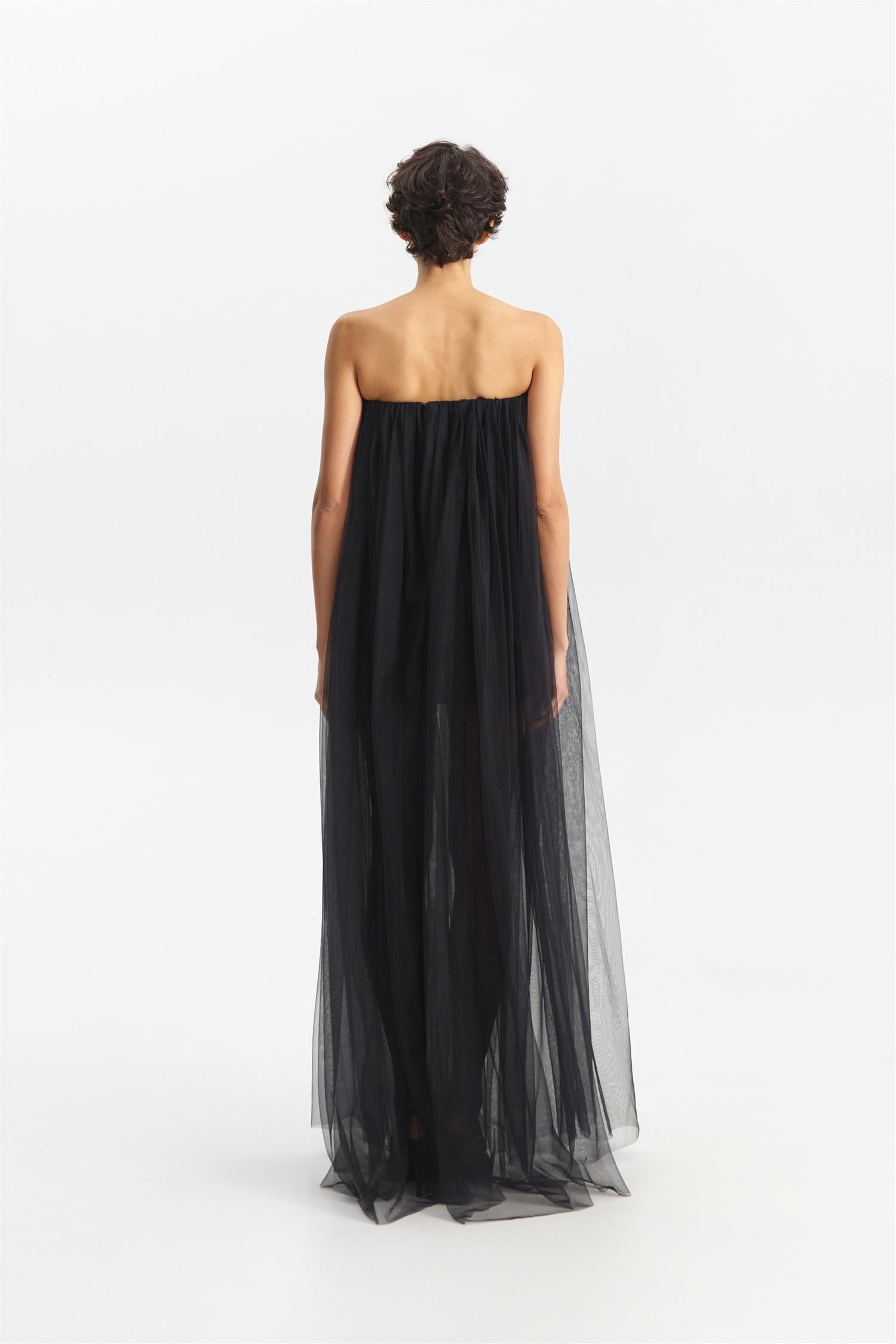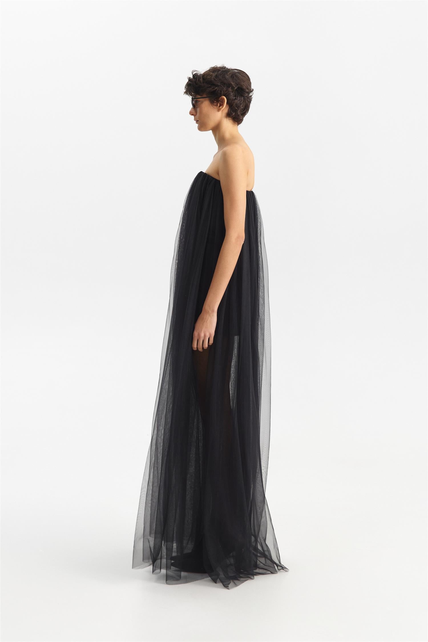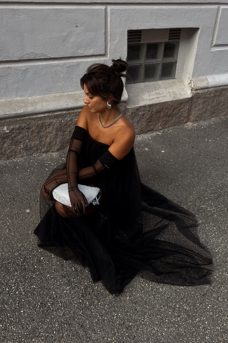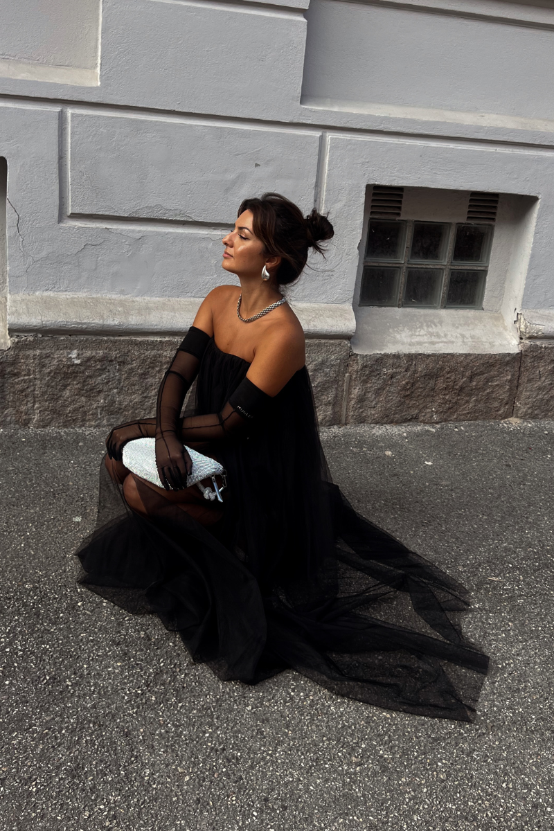 Mesh Dress fra Eleh. Mesh Dress er en rålekker tubekjole som kombinerer eleganse med en moderne edge. Kjolen er foret til midt på låret for en flatterende silhuett, mens det transparente mesh-stoffet fortsetter helt ned til bakken og skaper et unikt uttrykk. Perfekt til festlige anledninger når du ønsker en kjole som skiller seg ut. Normal i størrelsen.