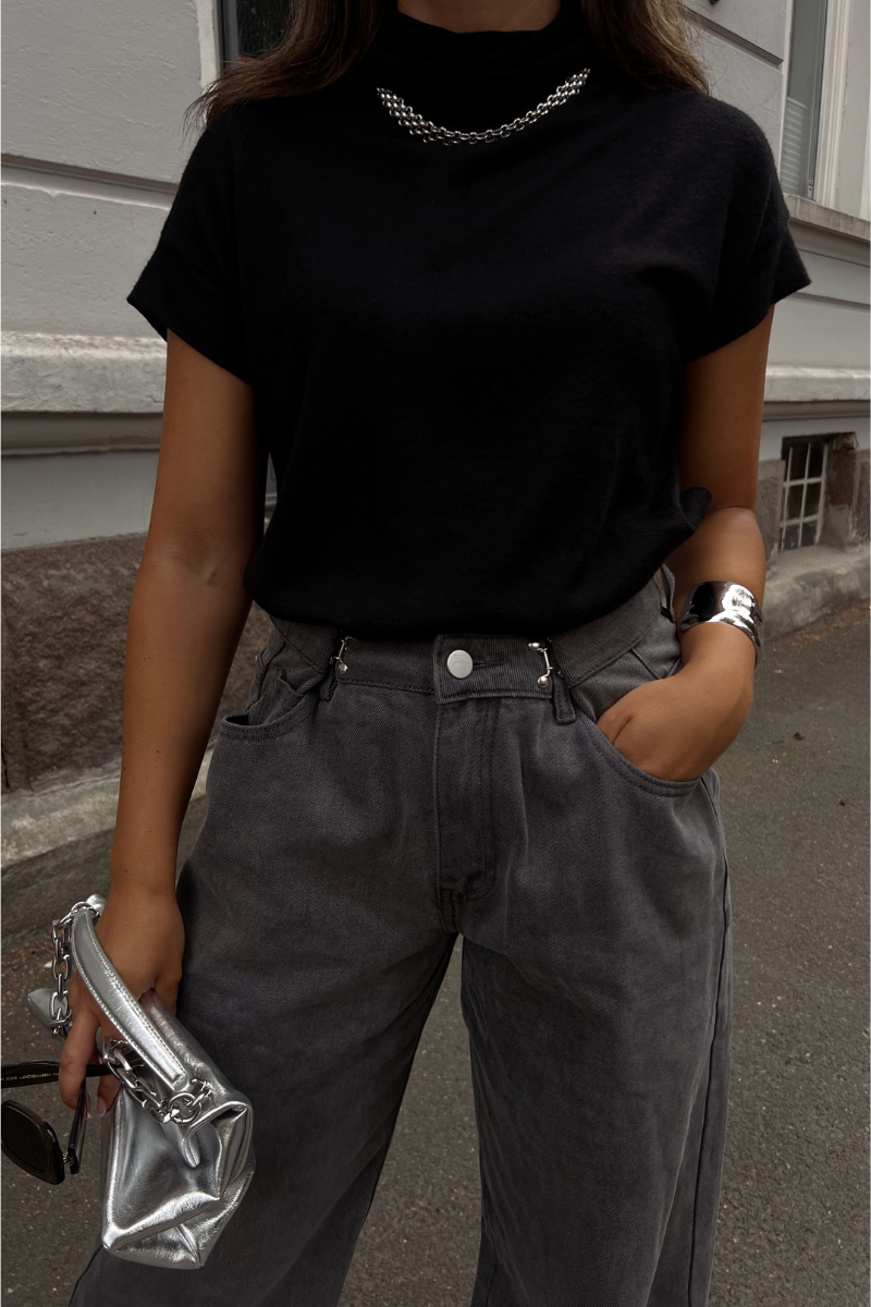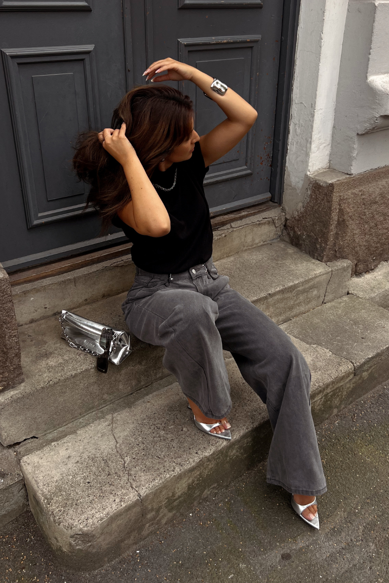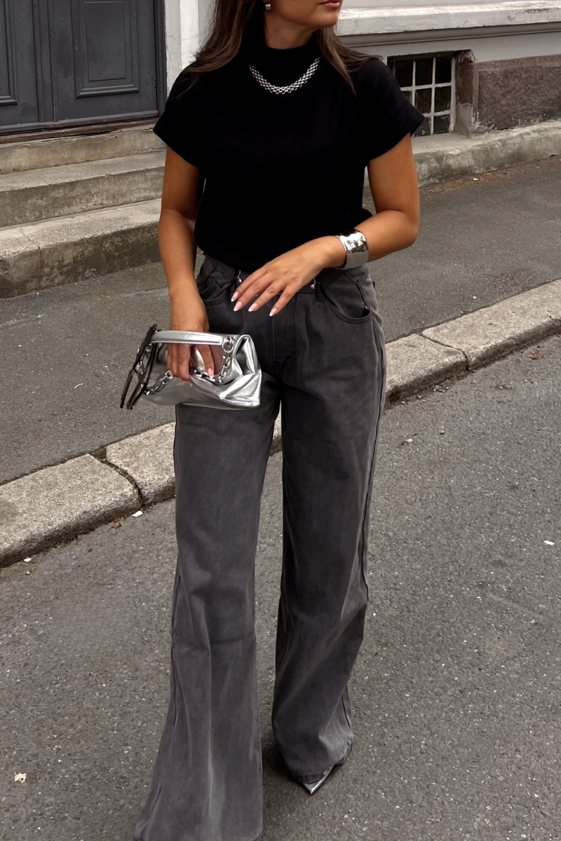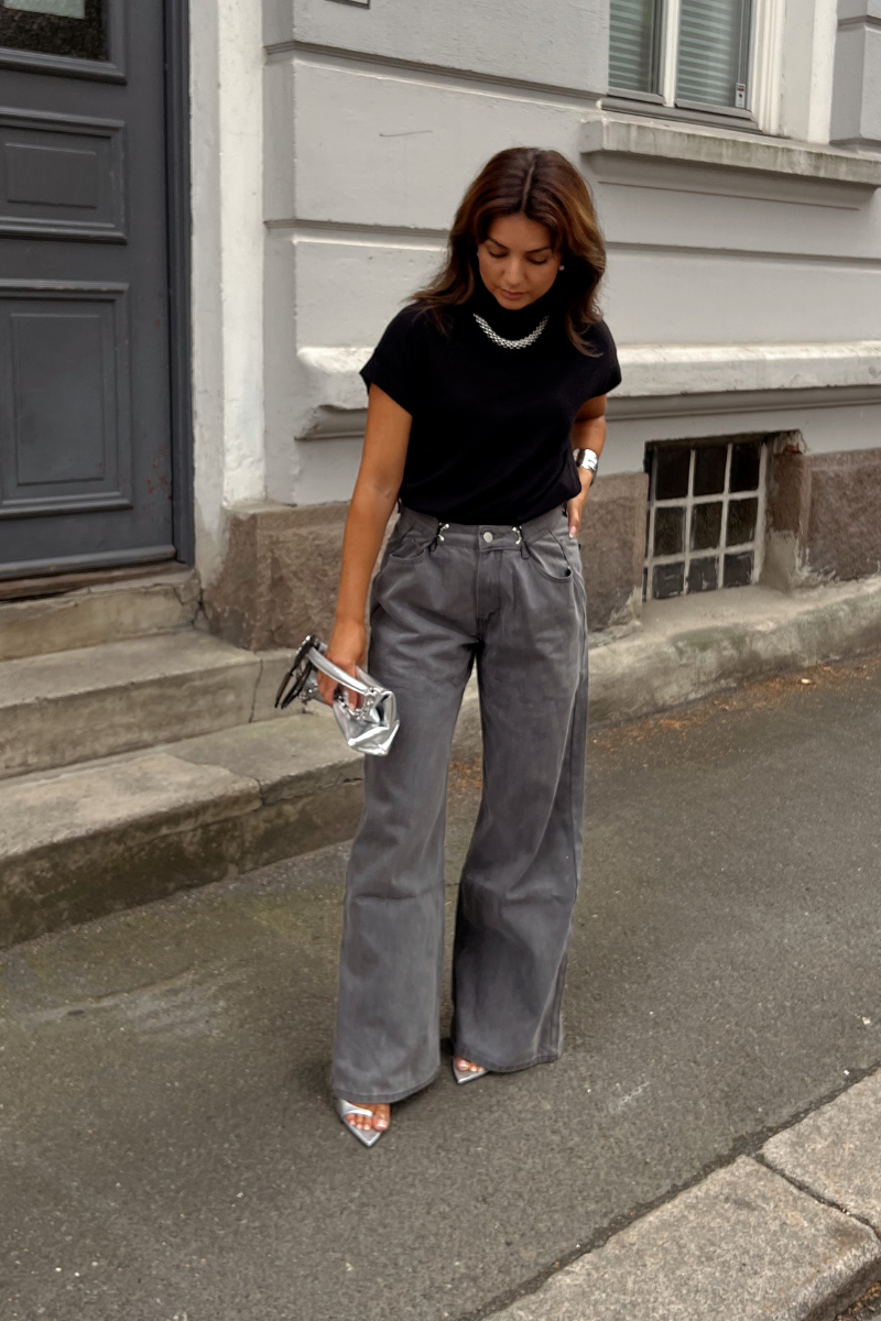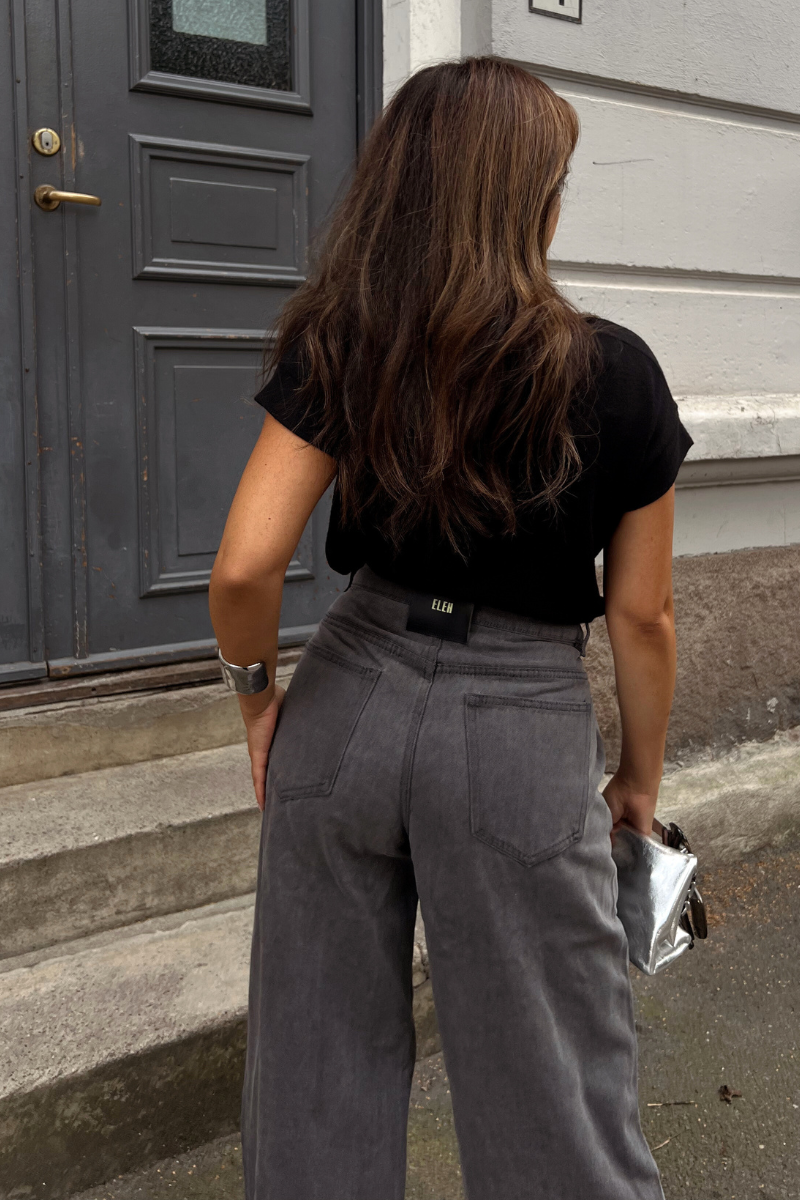 Classic Jeans fra Eleh. Baggy jeans i et tidløst grått design. Buksen har klassisk femlommerdesign og lukkes med knapp og glidelås. Den kan brukes som den er for et avslappet uttrykk, eller strammes inn med to hemper for en mer edgy look. Normal i størrelsen.