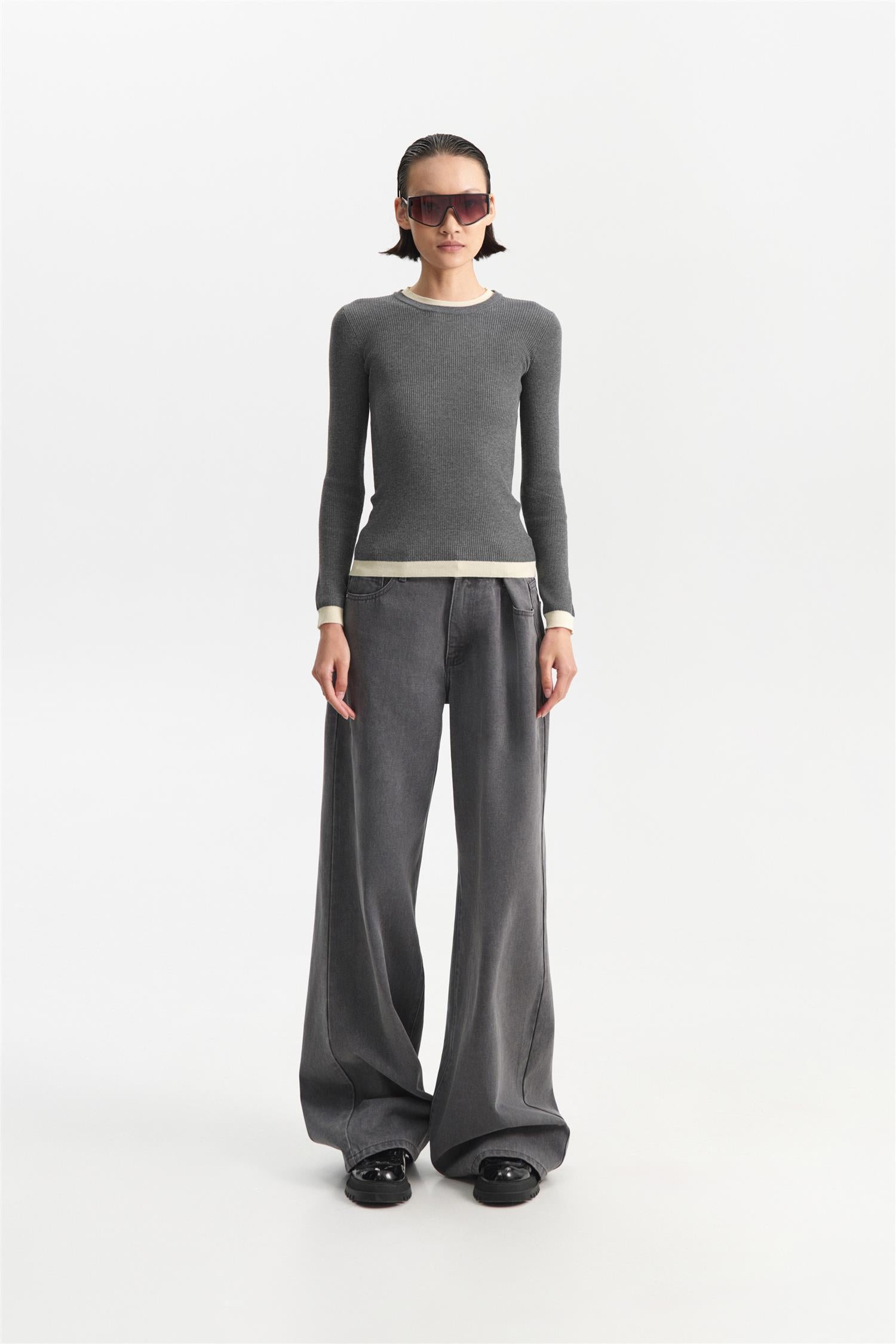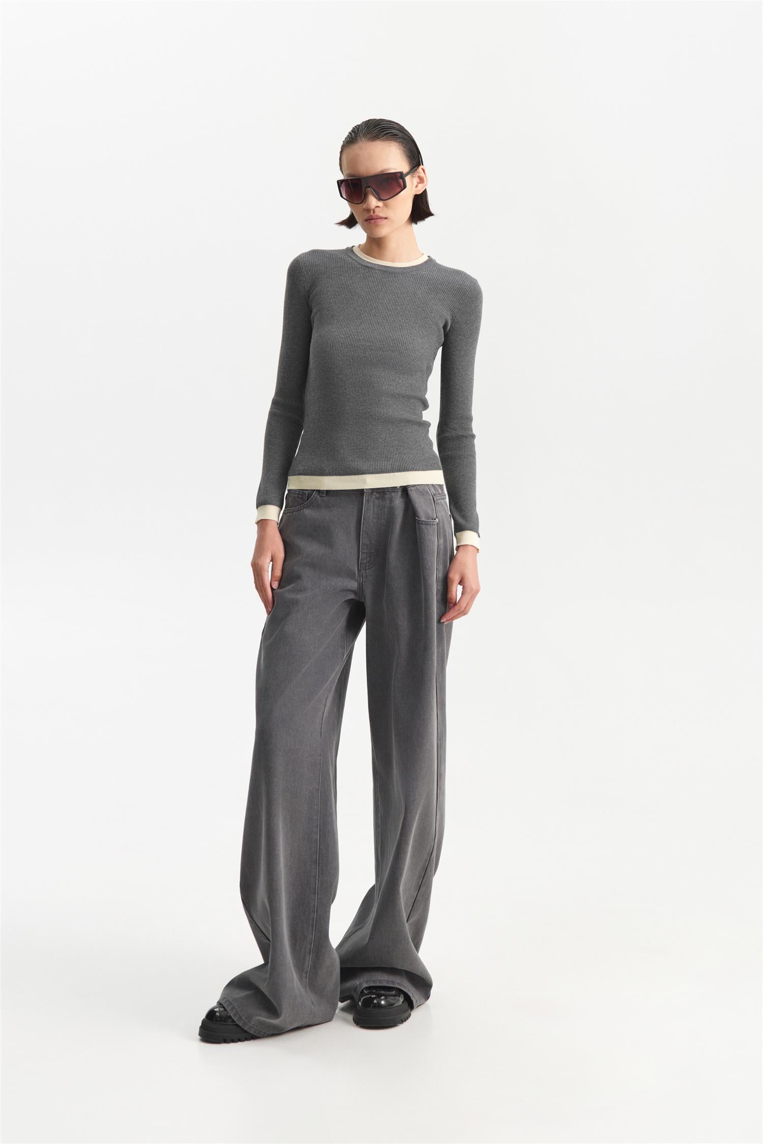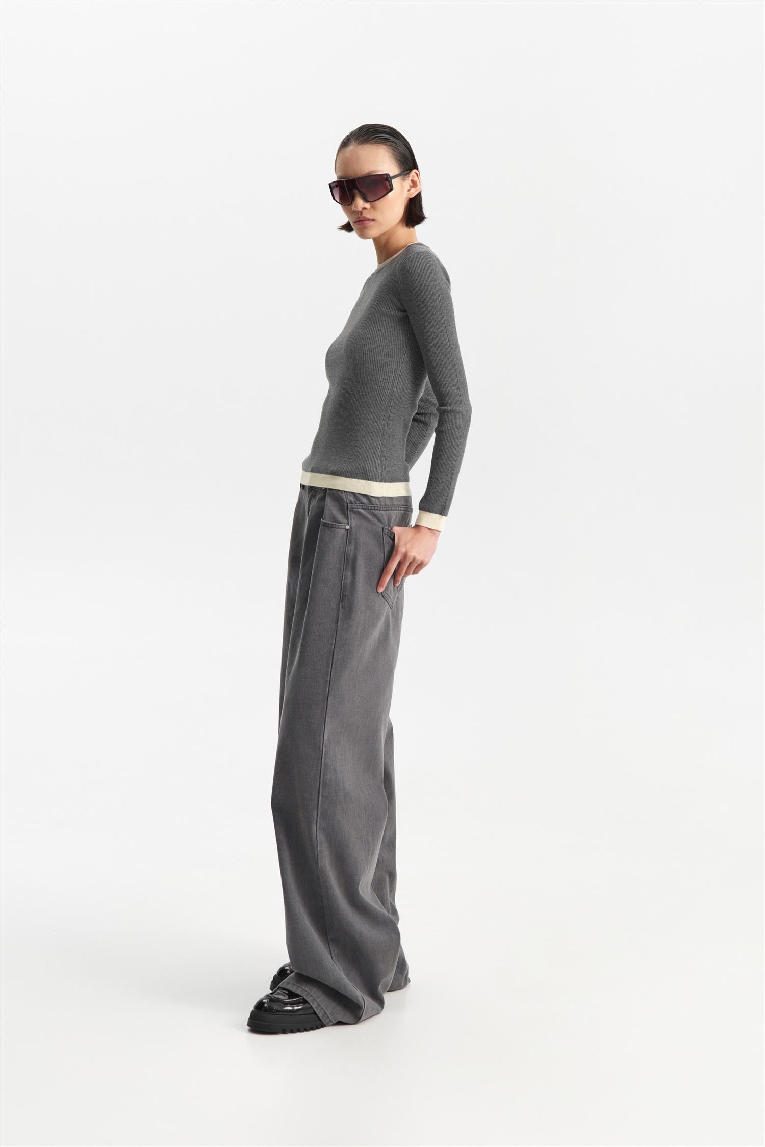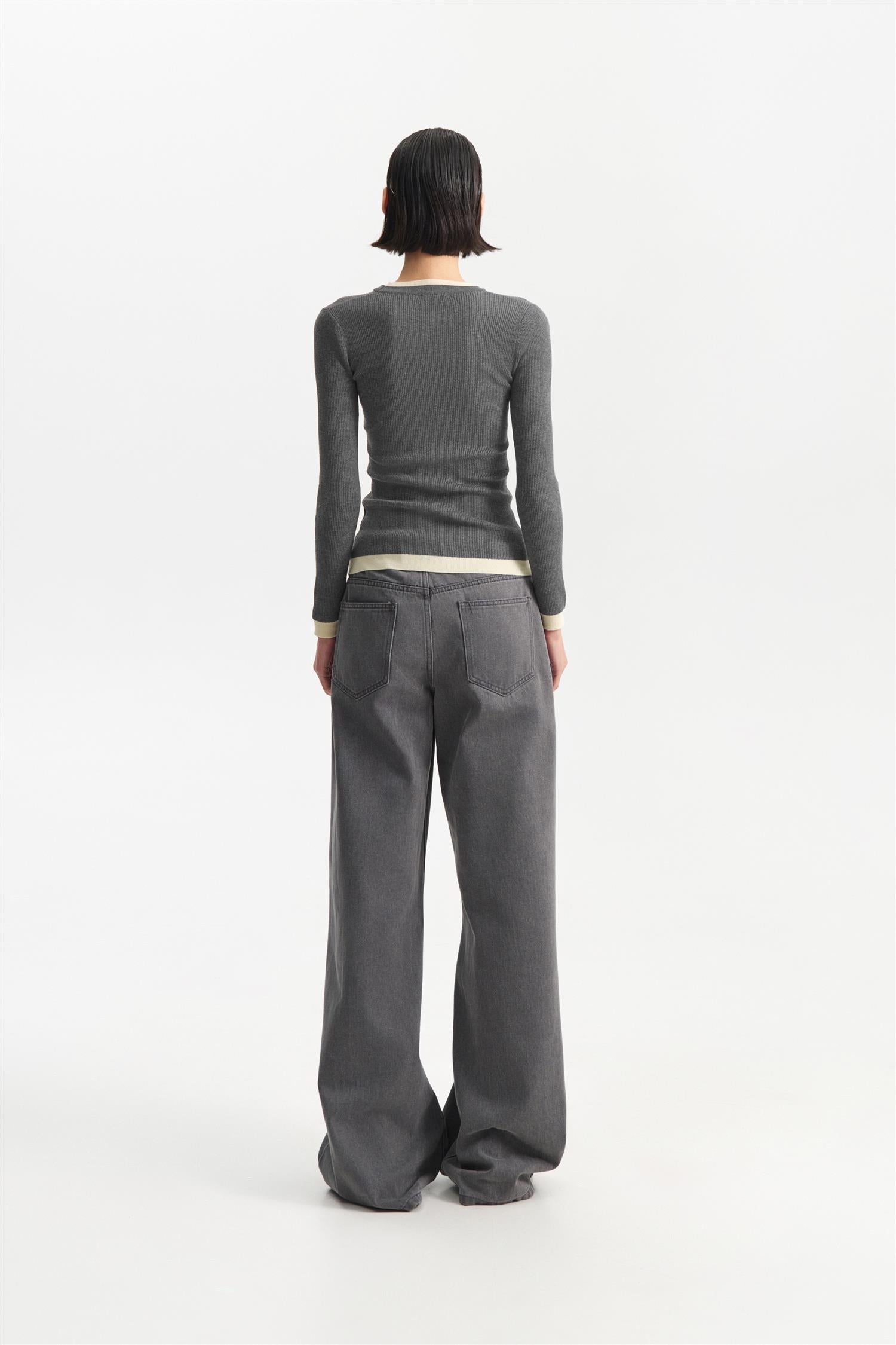 Classic Jeans fra Eleh. Baggy jeans i et tidløst grått design. Buksen har klassisk femlommerdesign og lukkes med knapp og glidelås. Den kan brukes som den er for et avslappet uttrykk, eller strammes inn med to hemper for en mer edgy look. Normal i størrelsen.