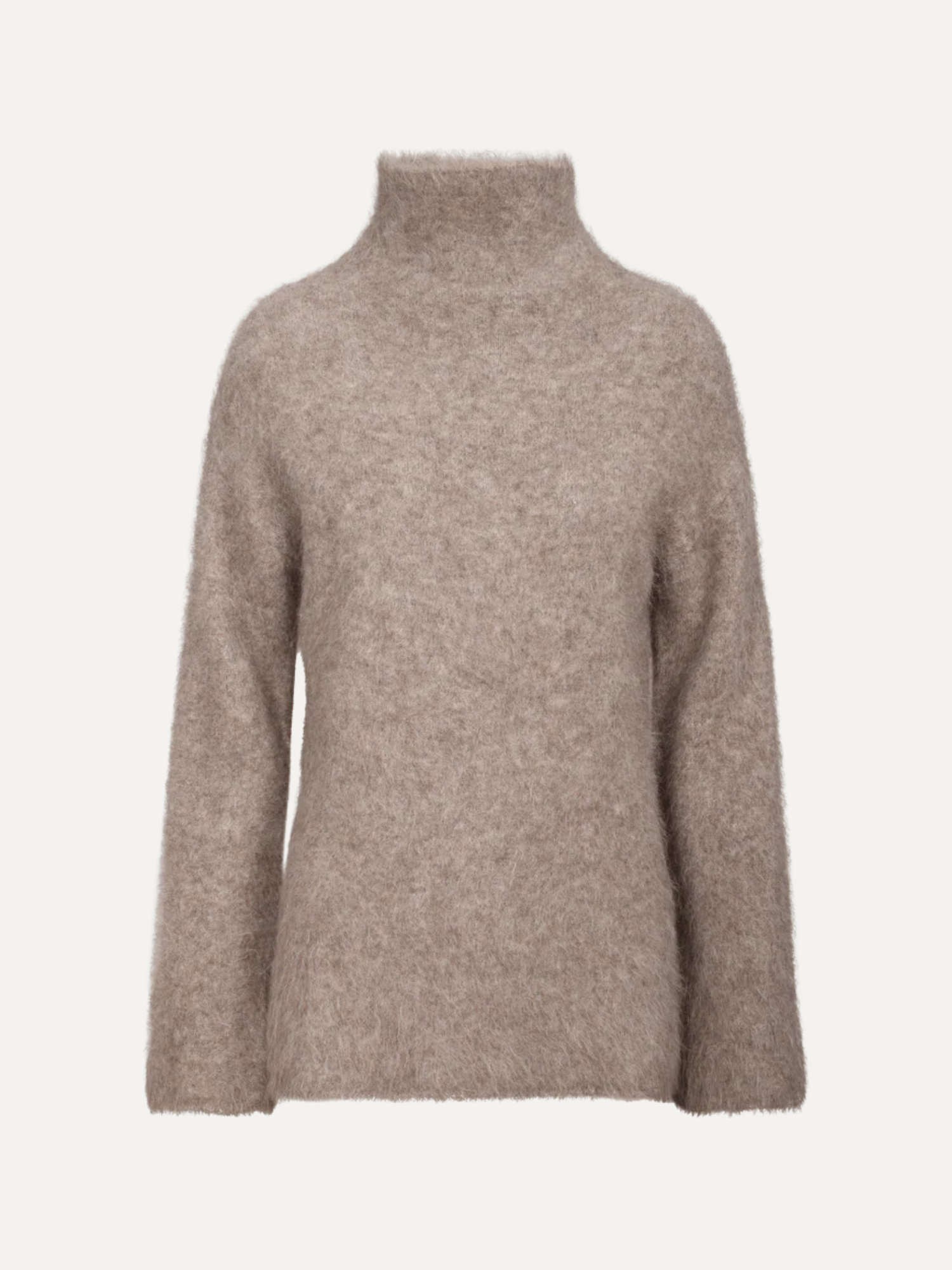 Edith Turtleneck fra Urban Pioneers. Edith Turtleneck er en tidløs og elegant høyhalset genser, perfekt for kjølige dager. Den er laget i en eksklusiv alpakka-blanding som gir en myk, varm og luksuriøs følelse mot huden. Med sin klassiske høyhalsede design og flatterende passform er den perfekt både alene og som en del av lag-på-lag-antrekk gjennom de kaldere månedene.