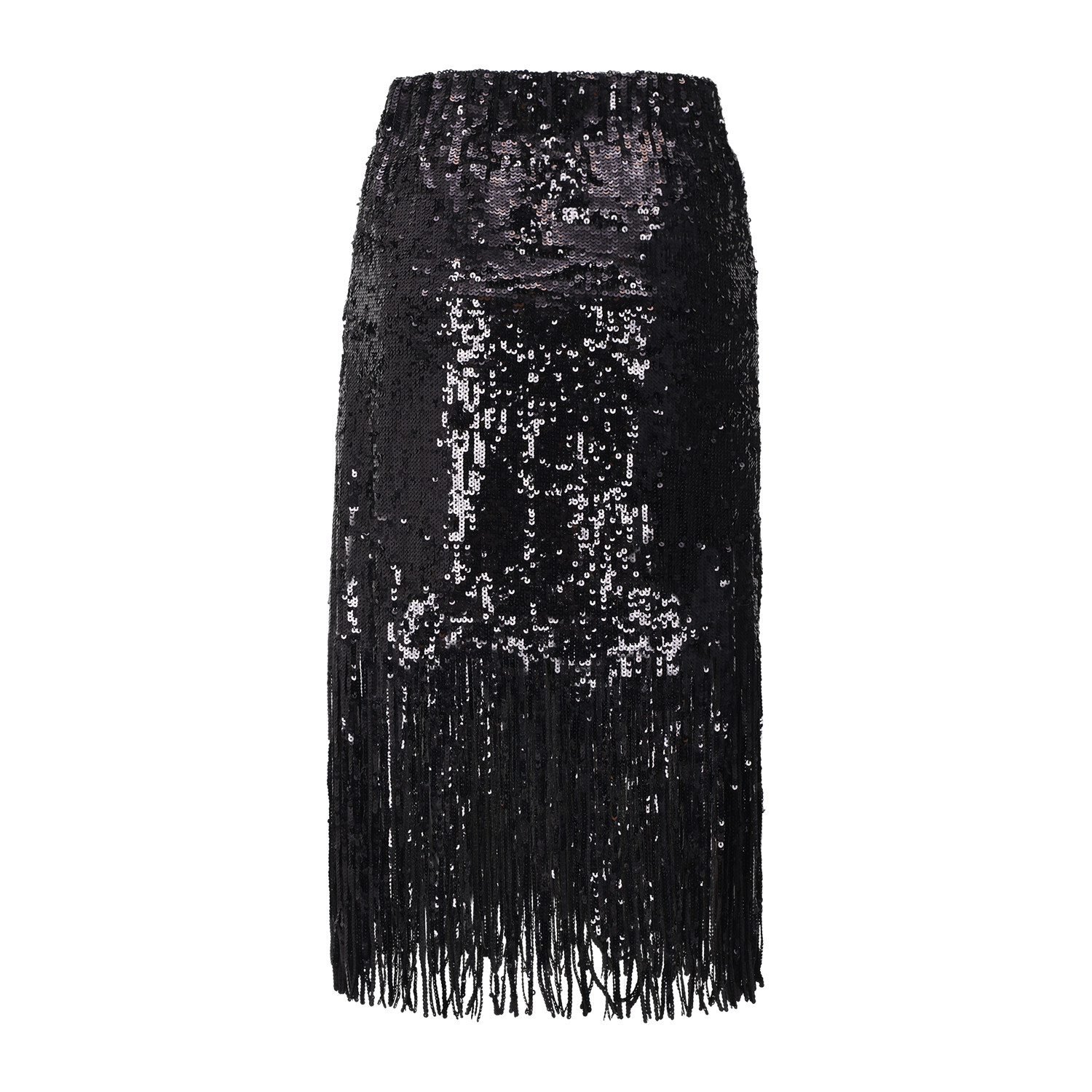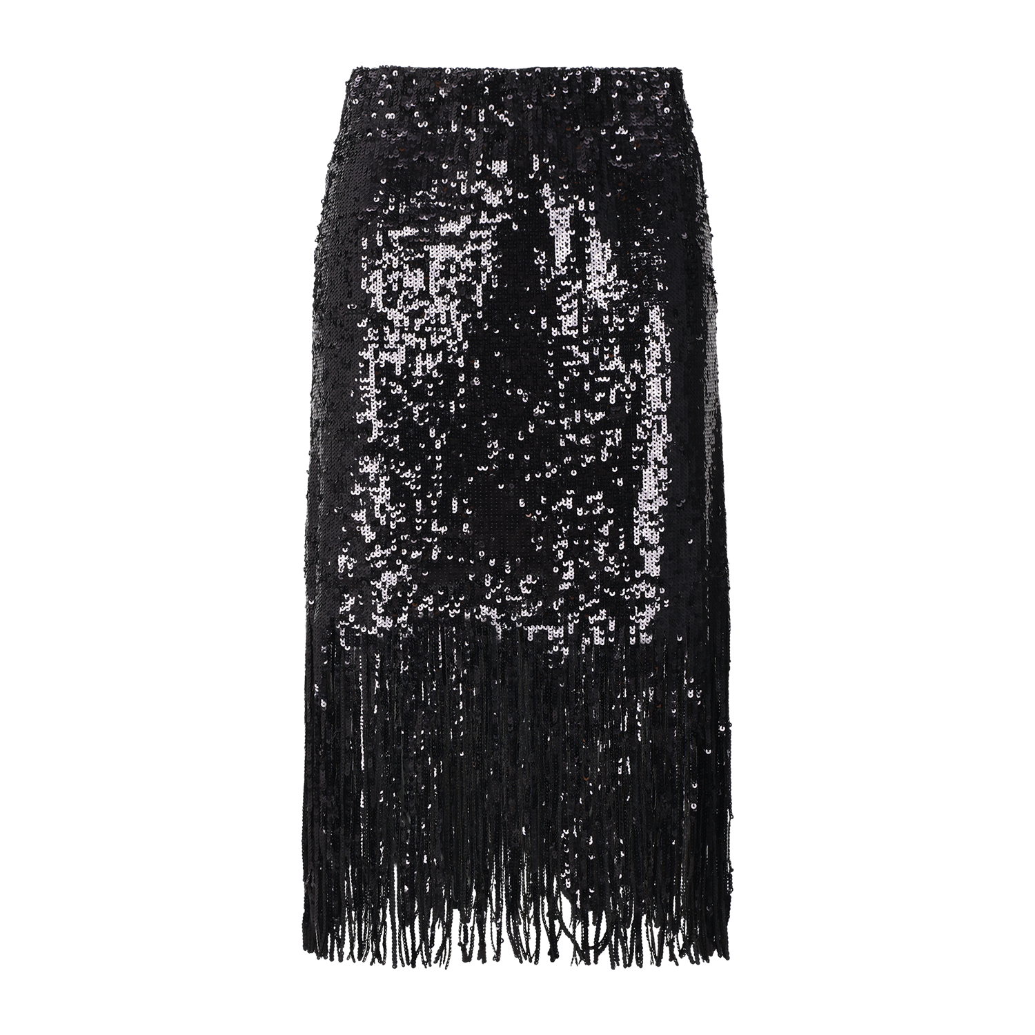 Dixi Skirt fra Urban Pioneers. Dixi Skirt er det ultimate festskjørtet, pyntet med glitrende paljetter og lekre frynser som gir ekstra bevegelse og liv til antrekket. Skjørtet har en behagelig strikk i livet og glidelås på siden for en perfekt passform. Normal i størrelsen.