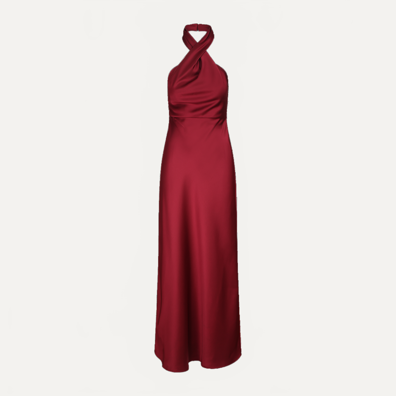 Dolores Dress fra Urban Pioneers. Dolores Dress er en nydelig maxikjole med halterneck-design og en elegant, flytende silhuett med vakre draperte detaljer. Perfekt valg til festlige anledninger, bryllup eller andre spesielle begivenheter. Lukkes i nakken for en ren og stilfull finish. Normal i størrelsen.