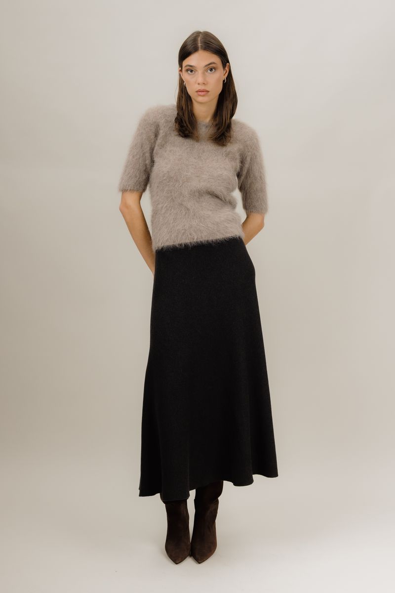 Sally Skirt fra Urban Pioneers. Sally Skirt er et tidløst A-formet, langt strikket skjørt som kombinerer flytende bevegelighet, komfort og bærekraftig design. Den lange, flytende silhuetten er flatterende og allsidig, og gjør det til et perfekt valg både til hverdagsbruk og til mer spesielle anledninger. Normal i størrelsen.