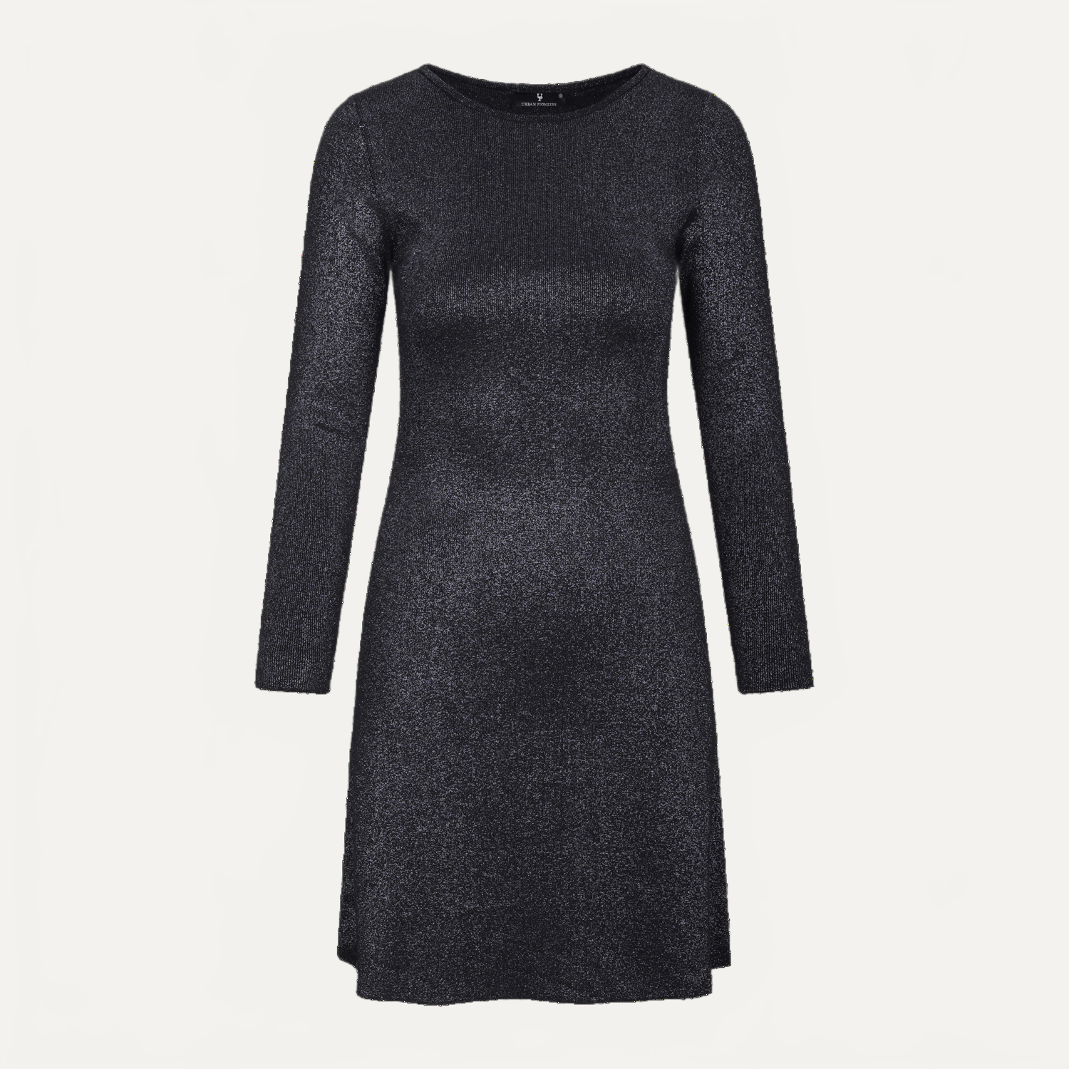 Arya Dress fra Urban Pioneers. Arya Dress er en elegant strikkekjole i luksuriøs viskose med diskrete metalliske tråder som gir en subtil glans. Med en flatterende, figurnær silhuett og lange ermer er den perfekt både til festlige anledninger og når du vil tilføre litt glans i hverdagen. Normal i størrelsen.