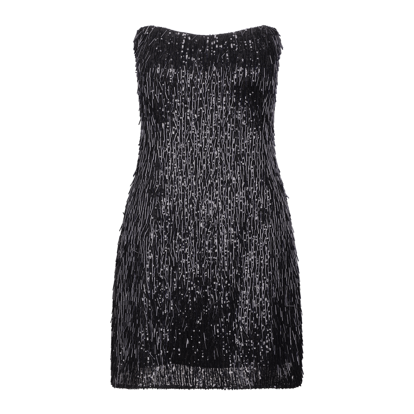 Anthea Dress fra Urban Pioneers. Anthea Dress er en festklar kjole fra Urban Pioneers Atelier Premium-kolleksjon, laget for å skinne på uforglemmelige fester og gjøre et glamorøst inntrykk. Kjolen er dekorert med intrikate perlebroderier som glitrer for hver bevegelse. Den stroppeløse utringningen og minilengden gir en flatterende silhuett, og det detaljerte designet gjør Anthea Dress til det perfekte valget når du vil stråle med eleganse og glamour. Normal i størrelsen.