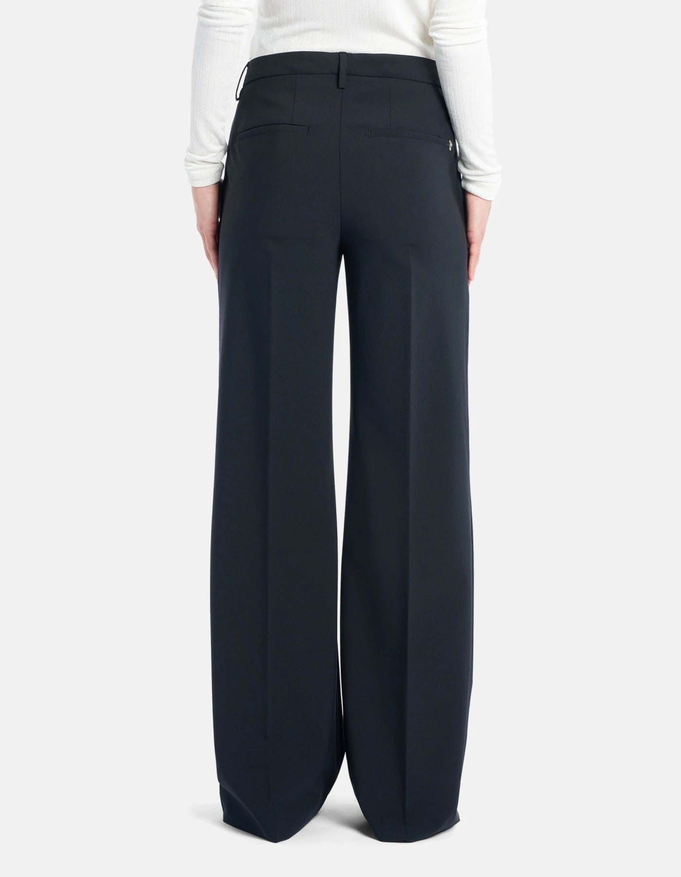 Wool Wide-Leg Trousers fra Dondup. Wool Wide-Leg Trousers er en elegant, vid bukse i stretch ullgabardin, designet med legg i front og klassisk regular midje. Buksen har doble passepoillommer bak og et tidløst snitt som gir en flatterende silhuett. Perfekt til både hverdags og mer formelle anledninger. Prydet med diskret Dondup-logo og laget i Italia av 95% ull og 5% elastan. Normal i størrelsen.